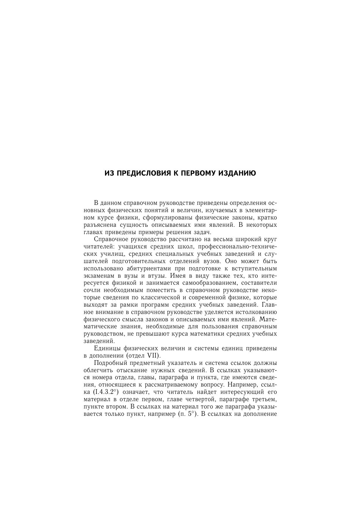 В пособии рассмотрены важнейшие вопросы классической и современной физики. Для углубленного изучения включены, помимо программного материала, вопросы, составляющие передний край физической науки (например, современная классификация элементарных частиц, кварковая модель адронов). Для учащихся различных типов средних учебных заведений, которые намереваются в дальнейшем поступать в высшие учебные заведения различного профиля и различных форм обучения (дневные, вечерние и заочные), а также для подготовки к единому государственному экзамену. Справочное пособие будет полезно также преподавателям средних учебных заведений.