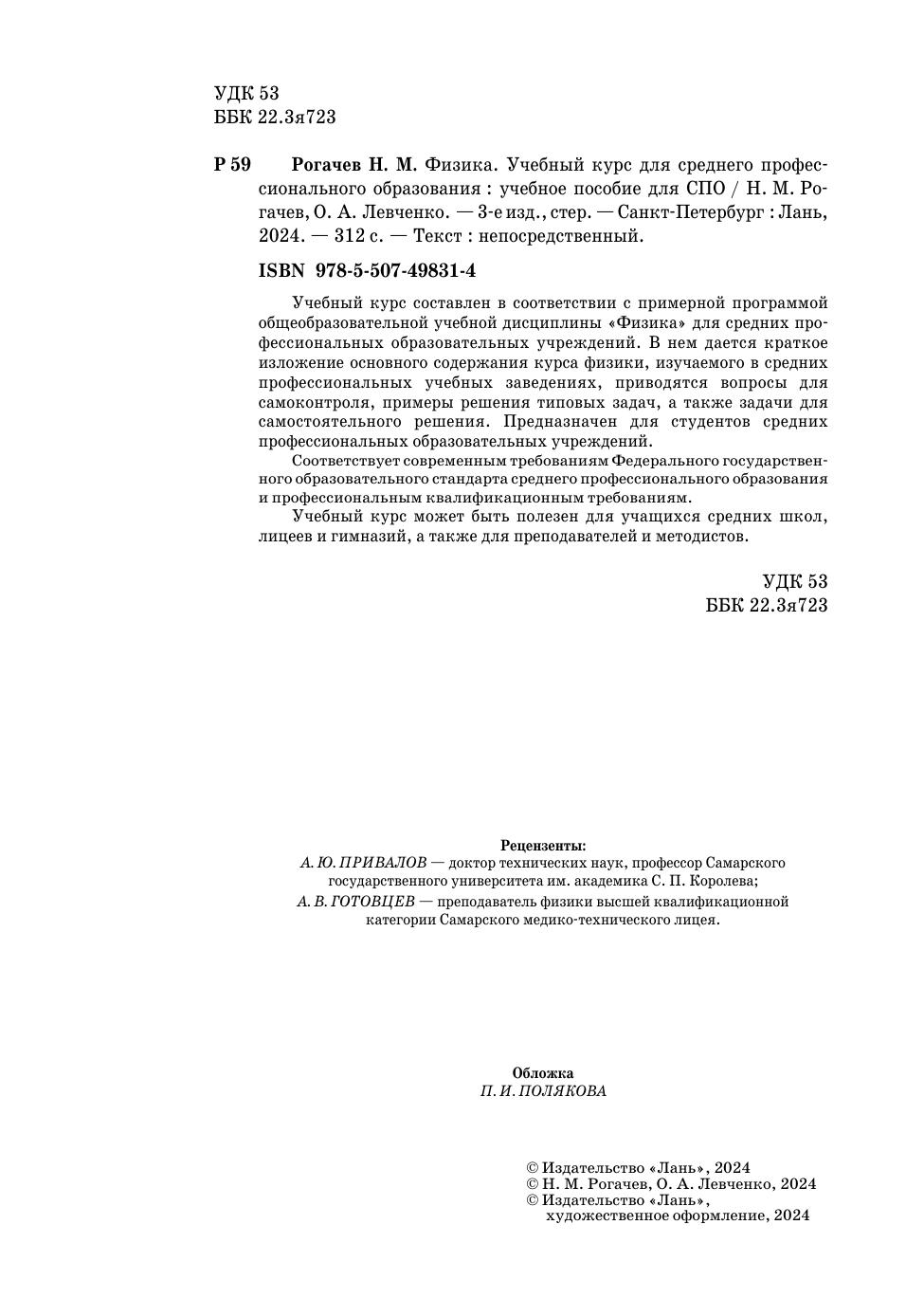 Учебный курс составлен в соответствии с примерной программой общеобразовательной учебной дисциплины «Физика» для средних про-фессиональных образовательных учреждений. В нем дается краткое изложение основного содержания курса физики, изучаемого в средних профессиональных учебных заведениях, приводятся вопросы для самоконтроля, примеры решения типовых задач, а также задачи для самостоятельного решения. Предназначен для студентов средних профессиональных образовательных учреждений. Соответствует современным требованиям Федерального государственного образовательного стандарта среднего профессионального образования и профессиональным квалификационным требованиям. Учебный курс может быть полезен для учащихся средних школ, лицеев и гимназий, а также для преподавателей и методистов.