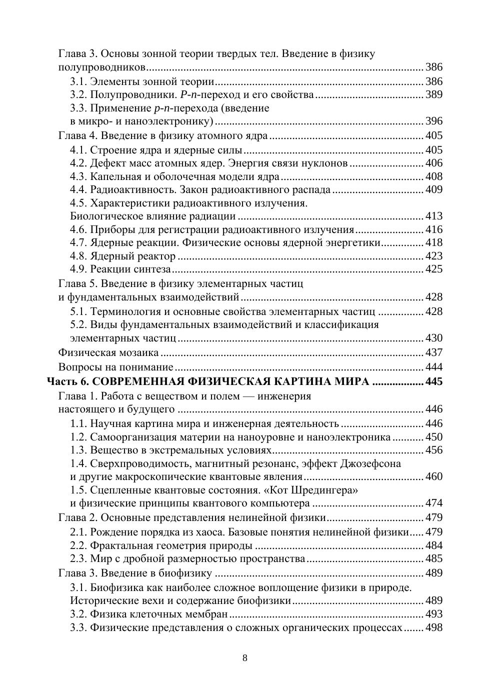 Учебник составлен с учетом требований государственных образовательных стандартов для естественно-научных и технических направлений высшего образования, изучающих курс «Физика» в течение трех и менее семестров. Главное внимание в учебнике уделено изложению представлений современной физической науки и ее приложений. Учебник состоит из шести частей, посвященных основам механики, молекулярной физики и термодинамики, электродинамики, теории колебаний и волн, квантовой и ядерной физики. Подробно рассмотрены вопросы современной физики (вещество в экстремальных состояниях, сверхпроводимость, сверхтекучесть, электронный парамагнитный и ядерный резонанс, эффект Мёссбауэра, квантовые компьютеры, базовые представления нелинейной физики, биофизики, а также основы астрофизики и космологии).