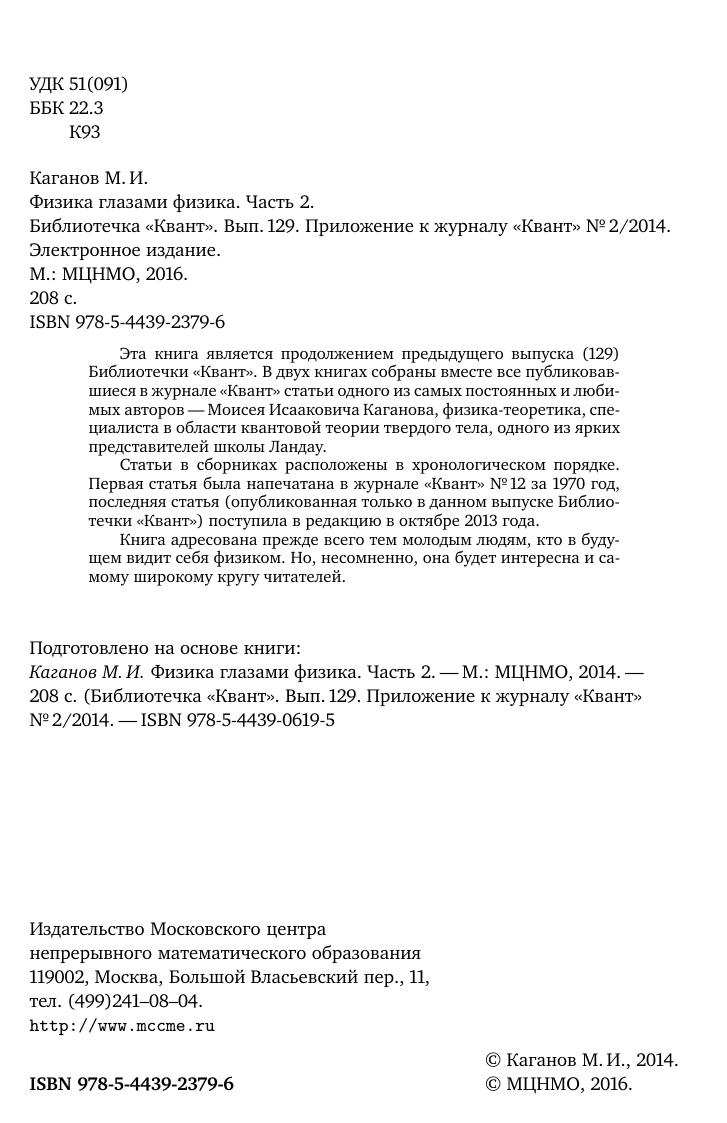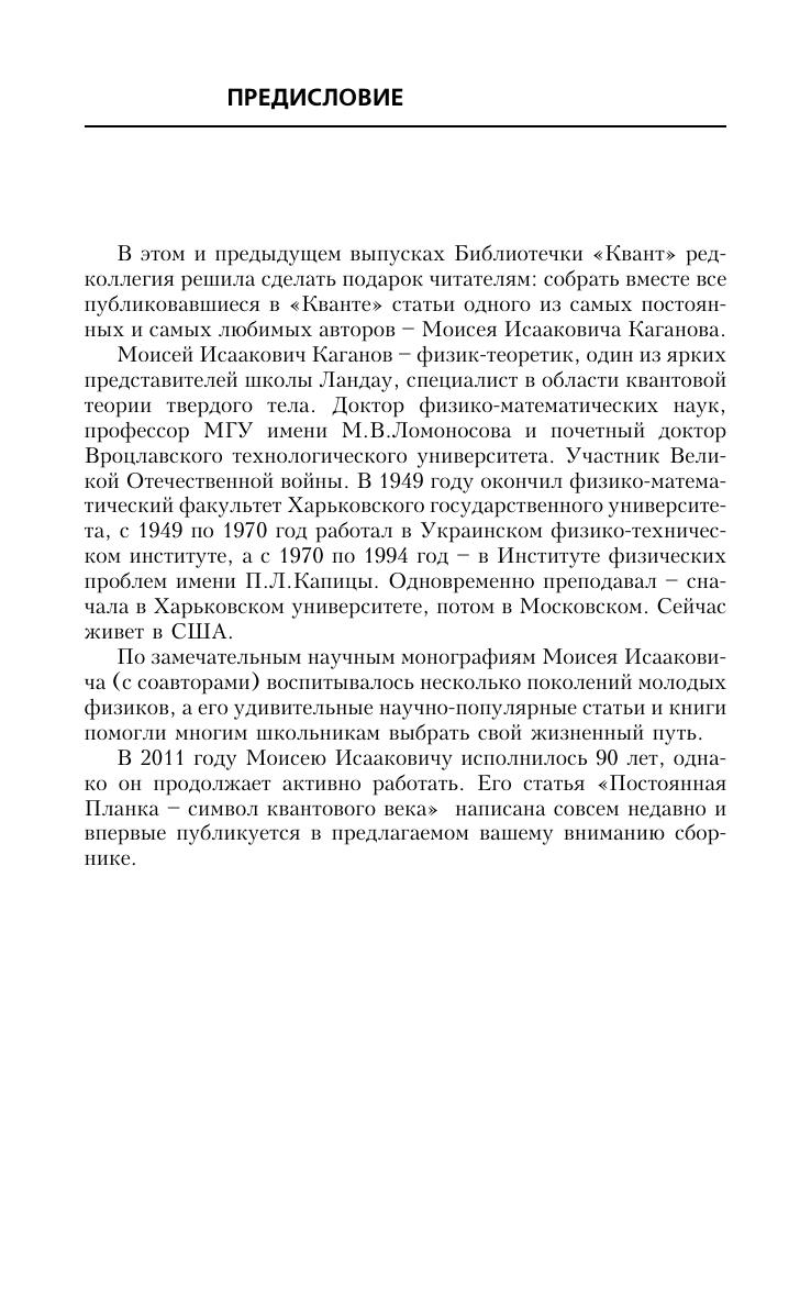 Эта книга является продолжением предыдущего выпуска (129) Библиотечки «Квант». В двух книгах собраны вместе все публиковавшиесяв журнале «Квант» статьи одного из самых постоянных и любимых авторов—Моисея Исааковича Каганова, физика-теоретика, специалиста в области квантовой теории твердого тела, одного из ярких представителей школы Ландау. Статьи в сборниках расположены в хронологическом порядке. Первая статья была напечатана в журнале «Квант» №12 за 1970 год,