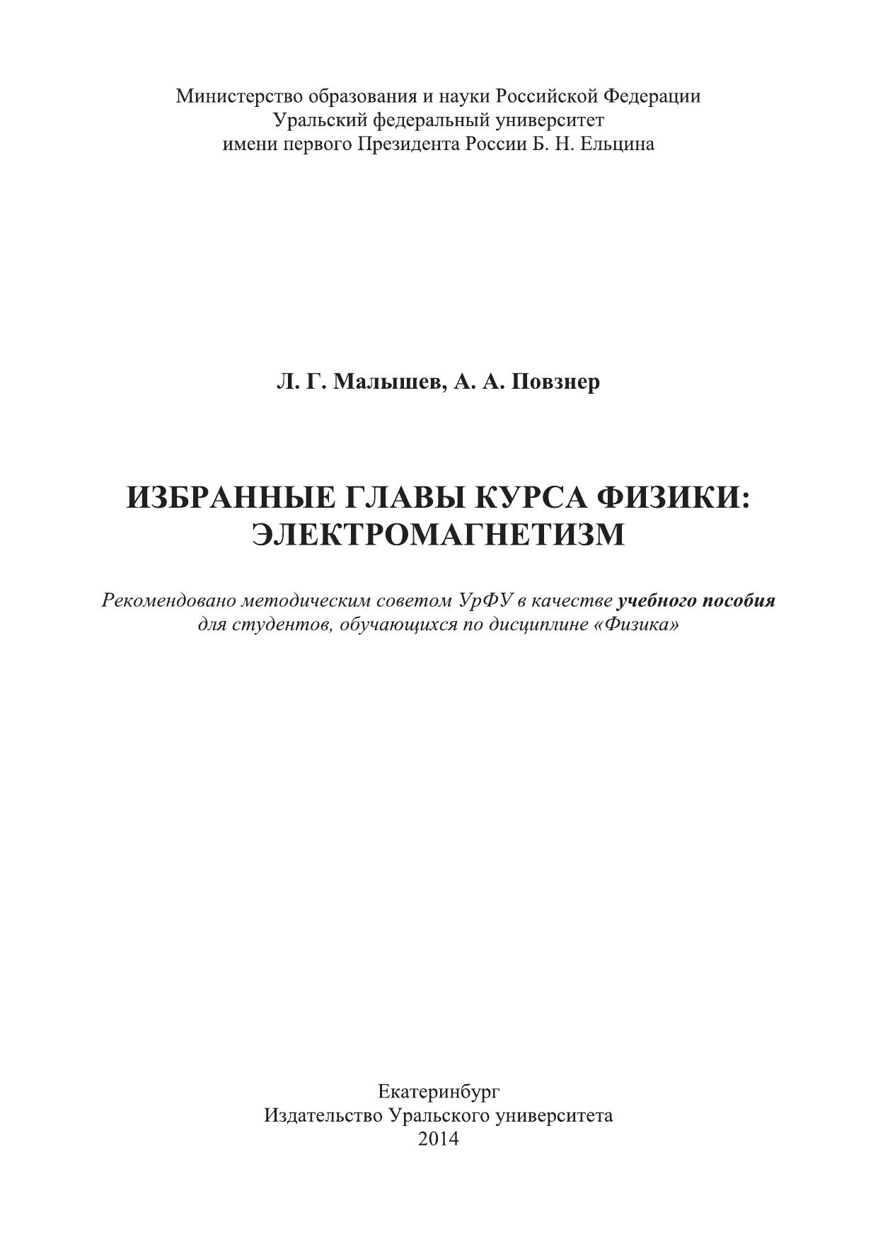 Учебное пособие «Избранные главы курса физики: электромагнетизм» предназначено для студентов УрФУ, обучающихся на физических и инженерно-физических направлениях подготовки, изучающих курс общей физики в соответствии с рабочей программой курса «Общая физика» и образовательными стандартами. Издание содержит теоретический материал, обсуждение основных физических законов и соотношений. Изложение материала сопровождается подробным анализом и решением большого числа задач и примеров. Использование студентами данного учебного пособия позволит улучшить уровень их подготовки по данному разделу курса «Физика».