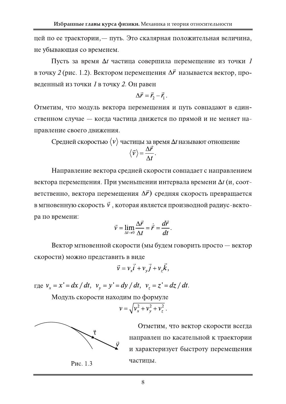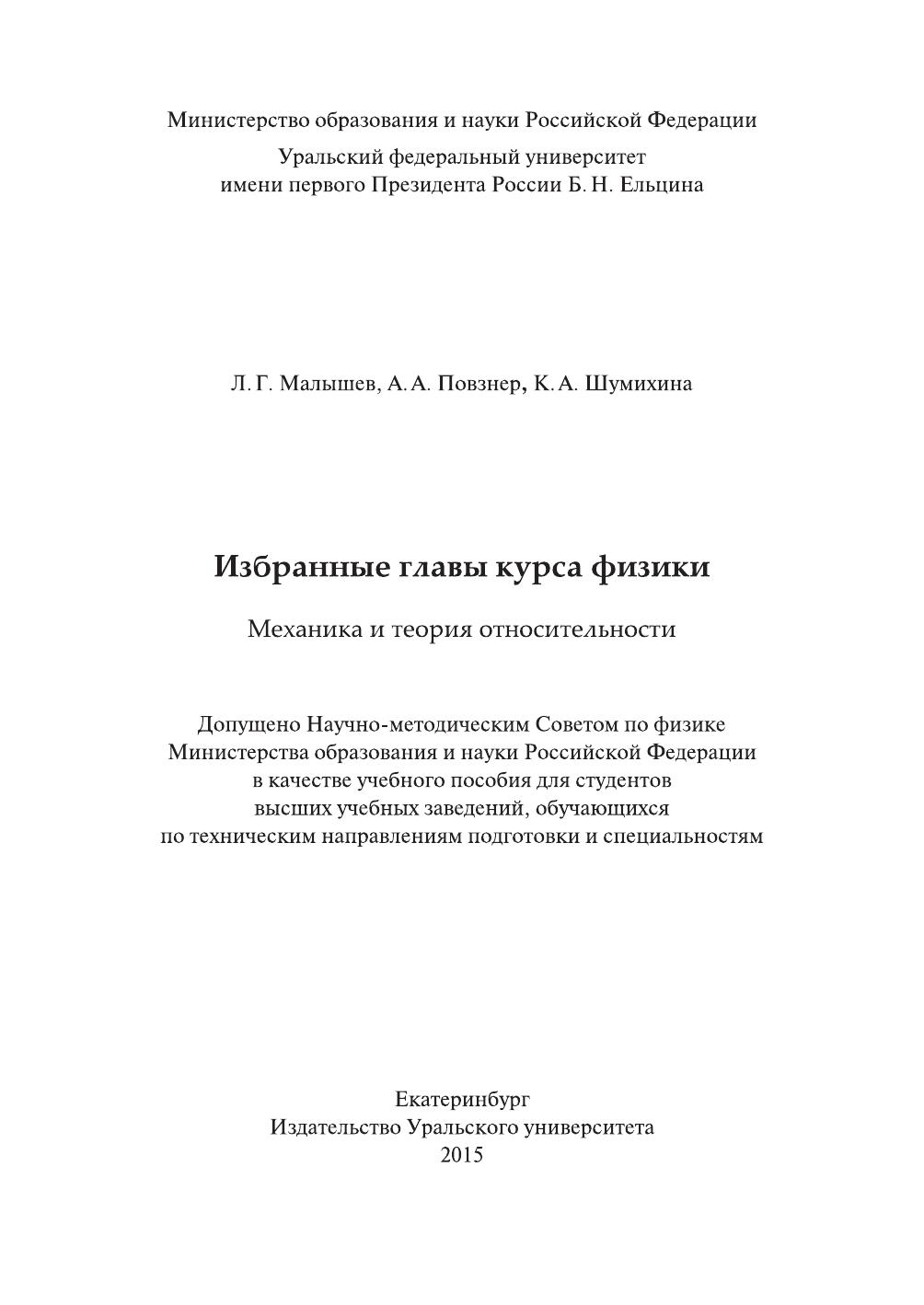 Избранные главы курса физики. Механика и теория относительности: учебное пособие