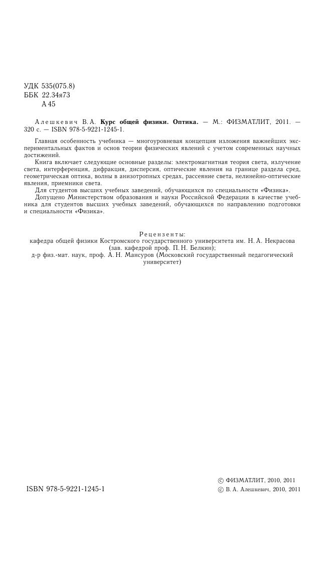 Гриф: Допущено Министерством образования и науки Российской Федерации в качестве учебника для студентов высших учебных заведений, обучающихся по направлению подготовки и специальности «Физика».