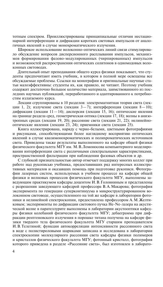 Главная особенность учебника — многоуровневая концепция изложения важнейших экспериментальных фактов и основ теории физических явлений с учетом современных научныхдостижений.Книга включает следующие основные разделы: электромагнитная теория света, излучениесвета, интерференция, дифракция, дисперсия, оптические явления на границе раздела сред, геометрическая оптика, волны в анизотропных средах, рассеяние света, нелинейно-оптические явления, приемники света.Для студентов высших учебных заведений, обучающихся по специальности «Физика».