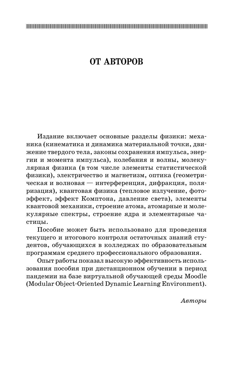 Учебное пособие представляет собой сборник вопросов и задач по курсу общей физики и призвано выполнять функции самообучения и самоконтроля обучающегося. Структура и содержание заданий соответствуют требованиям Федерального государственного образовательного стандарта среднего специального образования.