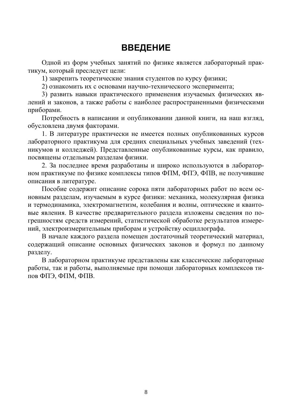 Предлагаемый лабораторный практикум предназначен для студентов средних специальных учебных заведений всех форм обучения, а также может быть использован для школьного образования и профессиональных училищ со средним образованием, где изучается курс общей физики.