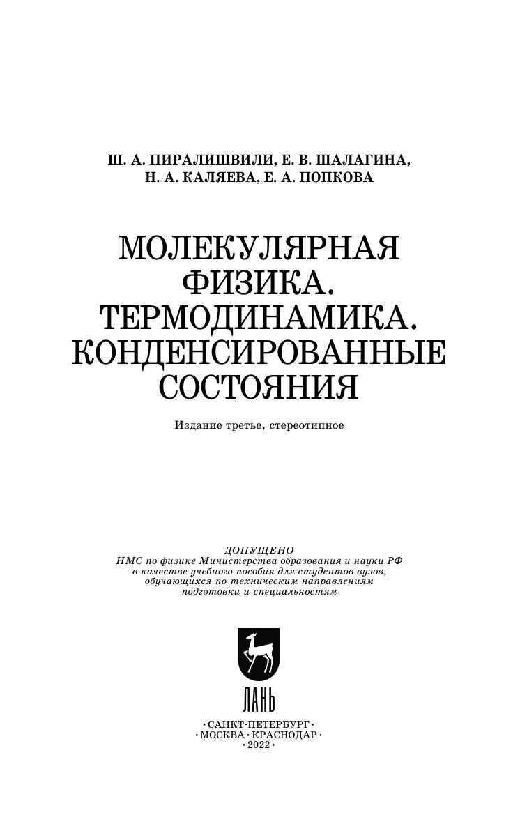В учебном пособии на доступном уровне изложены современные фундаментальные вопросы курса общей физики по разделам: «Молекулярная физика», «Термодинамика» и «Конденсированные состояния» в соответствии со стандартами подготовки специалистов по различным специальностям. Структура пособия такова, что позволяет обучающемуся вести самостоятельную подготовку, подкрепляя ее приведенными в тексте контрольными вопросами и решением задач, завершающими каждую главу.