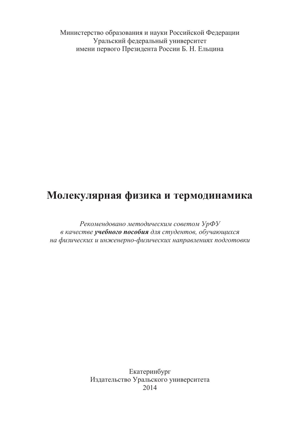 Учебное пособие содержит краткое изложение материала лекций, сводку основных физических соотношений, необходимых для решения задач, и подробно разобранные примеры решения задач. Самостоятельное использование студентами пособия позволит улучшить уровень их подготовки по данным разделам курса «Физика». Учебное пособие «Молекулярная физика и термодинамика» предназначено для студентов, обучающихся на физических и инженерно-физических направлениях подготовки, изучающих курс общей физики в соответствии с рабочей программой курса «Общая физика» и образовательными стандартами.