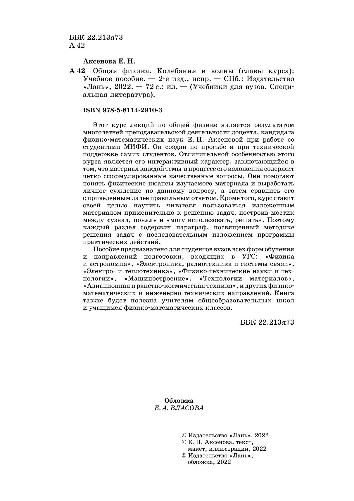 Этот курс лекций по общей физике является результатом многолетней преподавательской деятельности доцента, кандидата физико-математических наук Е. Н. Аксеновой при работе со студентами МИФИ. Он создан по просьбе и при технической поддержке самих студентов. Отличительной особенностью этого курса является его интерактивный характер, заключающийся в том, что материал каждой темы в процессе его изложения содержит четко сформулированные качественные вопросы. Они помогают понять физические нюансы изучаемого материала и выработать личное суждение по данному вопросу, а затем сравнить его с приведенным далее правильным ответом. Кроме того, курс ставит своей целью научить читателя пользоваться изложенным материалом применительно к решению задач, построив мостик между «узнал, понял» и «могу использовать, решать». Поэтому каждый раздел содержит параграф, посвященный методике решения задач с последовательным изложением программы практических действий. Пособие предназначено для студентов вузов всех форм обучения и направлений подготовки, входящих в УГС: «Физика и астрономия», «Электроника, радиотехника и системы связи», «Электро- и теплотехника», «Физико-технические науки и технологии», «Машиностроение», «Технологии материалов», «Авиационная и ракетно-космическая техника» и других физико-математических и инженерно-технических направлений. Книга также будет полезна учителям общеобразовательных школ и учащимся физико-математических классов.