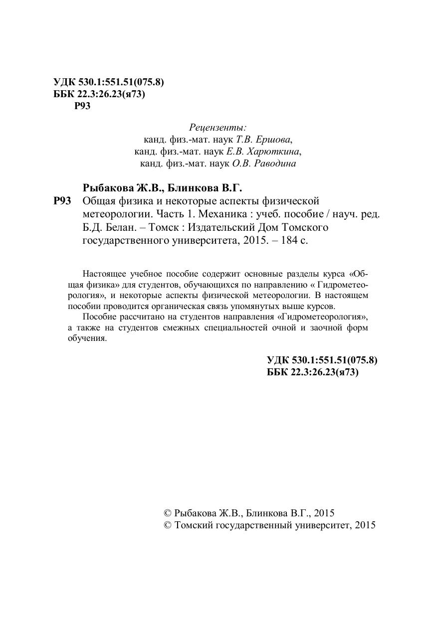 Настоящее учебное пособие содержит основные разделы курса «Общая физика» для студентов, обучающихся по направлению « Гидрометеорология», и некоторые аспекты физической метеорологии. В настоящем пособии проводится органическая связь упомянутых выше курсов. Пособие рассчитано на студентов направления «Гидрометеорология», а также на студентов смежных специальностей очной и заочной форм обучения.