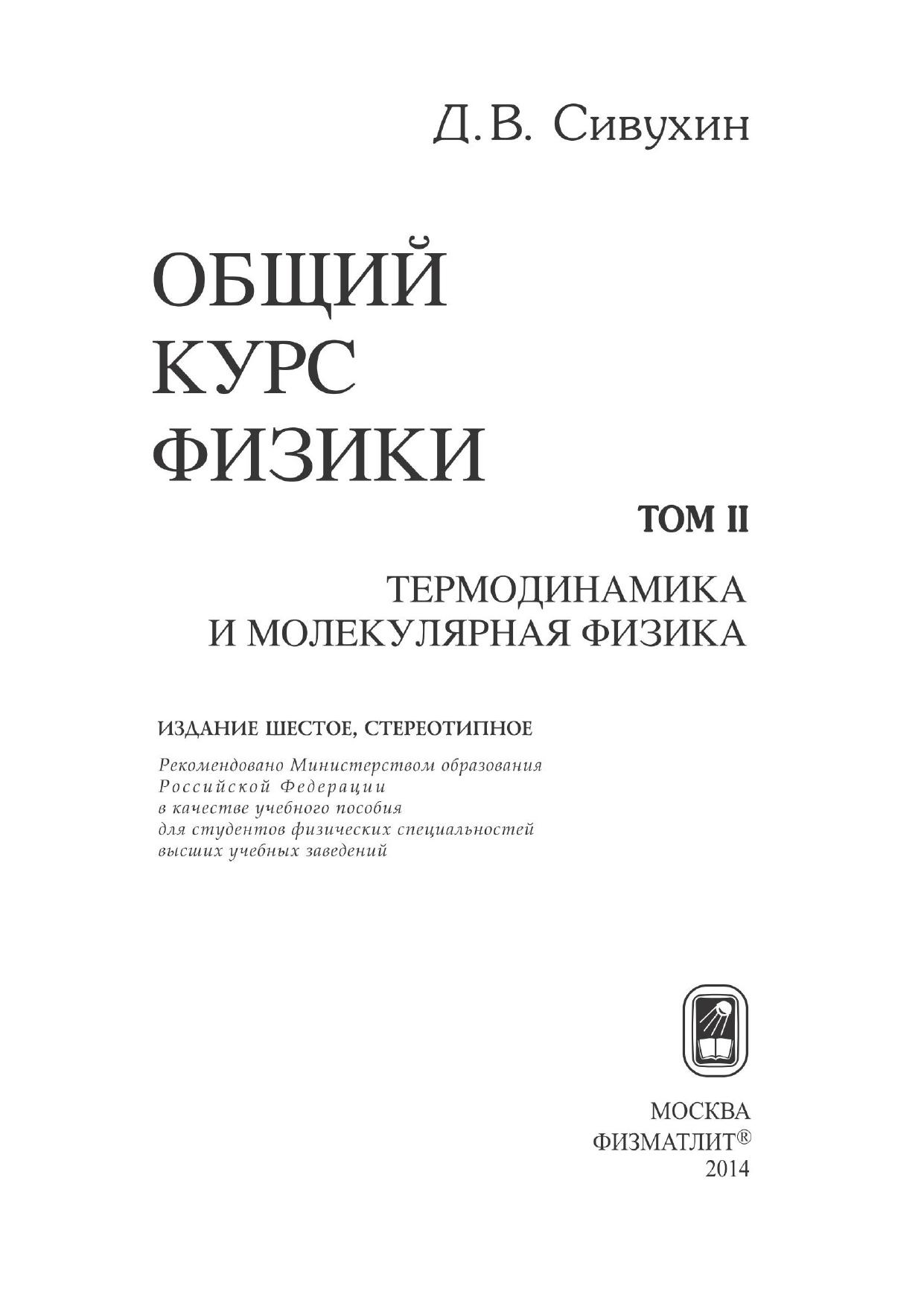 Общий курс физики. В 5 т. Т.II. Термодинамика и молекулярная физика