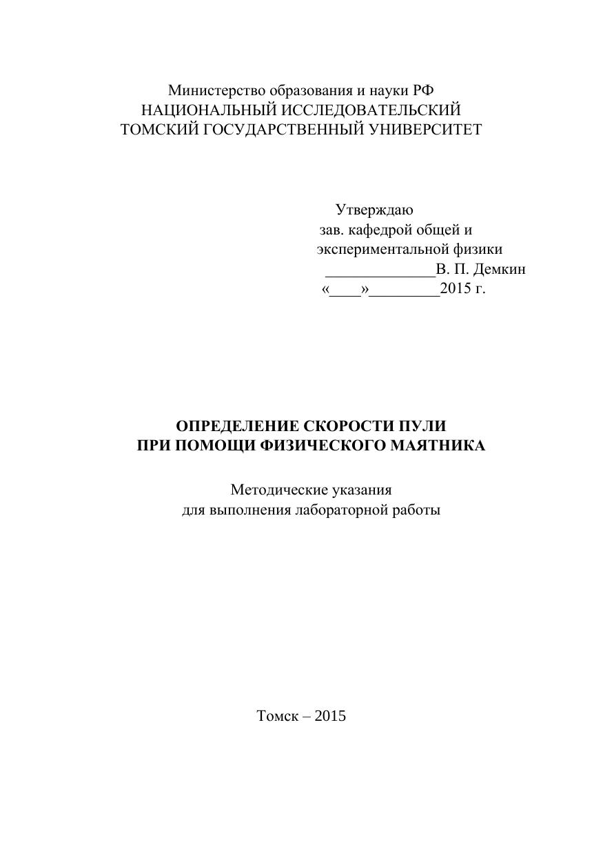 Определение скорости пули при помощи физического маятника. Методические указания для выполнения лабораторной работы