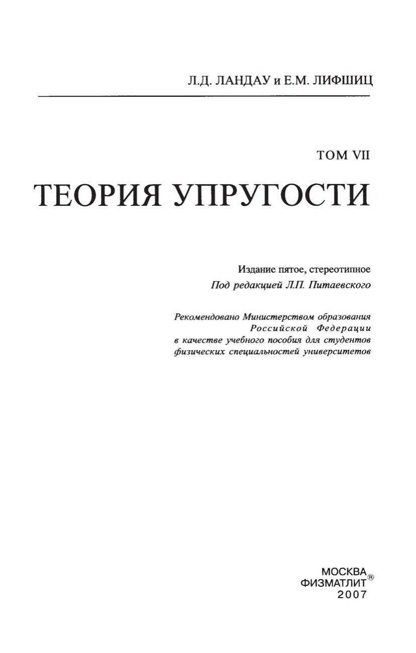 Теоретическая физика. В 10 т. Т.VII. Теория упругости