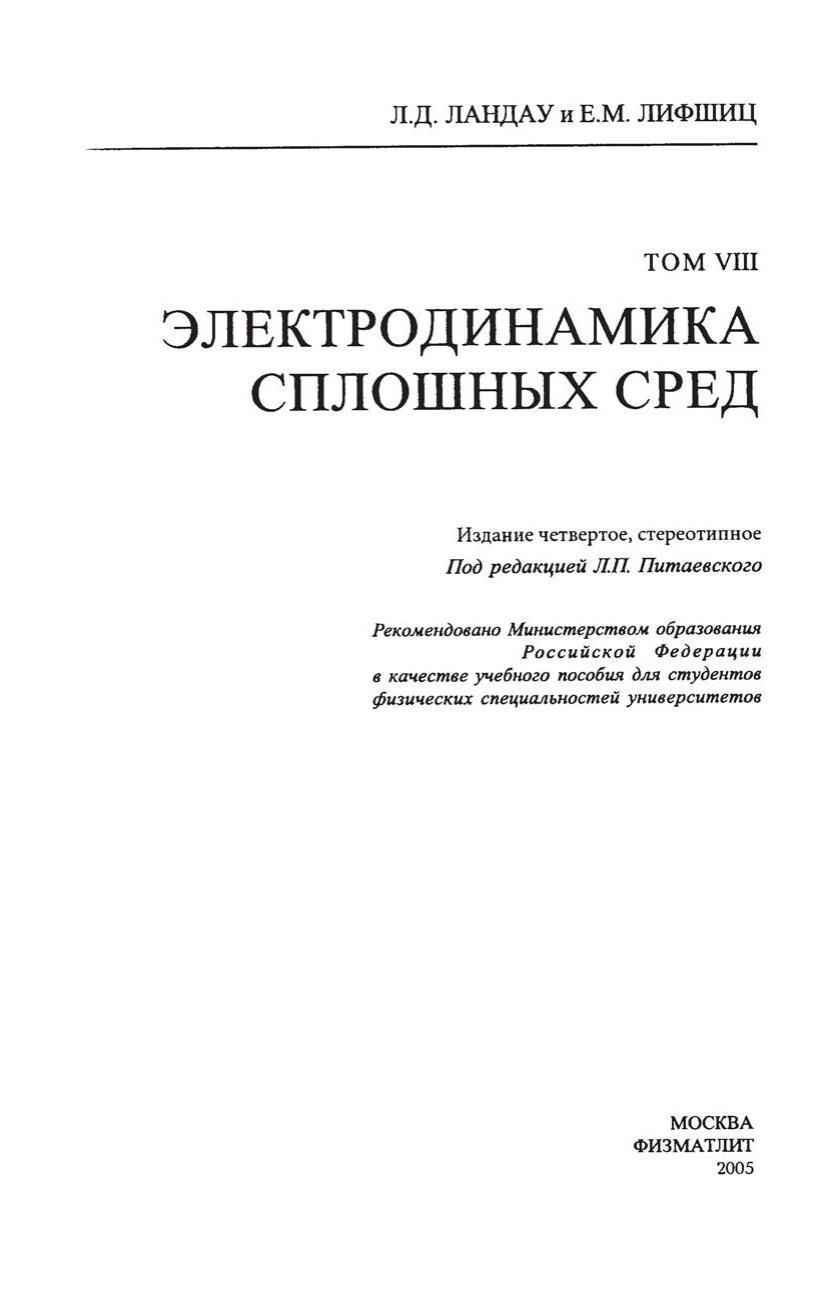 Авторы: Ландау Л.Д., Лифшиц Е.М.