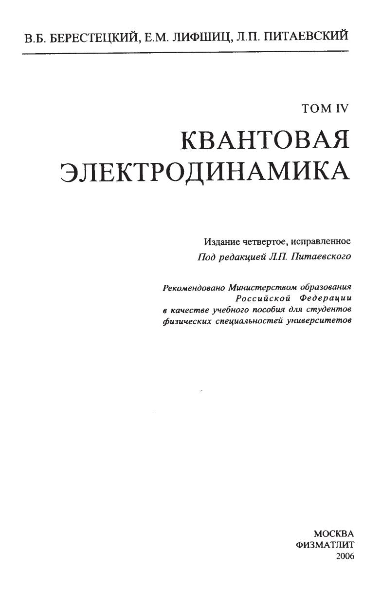 Четвертое издание четвертого тома курса "Теоретическая физика", заслужившего широкую известность в нашей стране и за рубежом. Том включает в себя релятивистскую теорию свободных частиц во внешнем поле, теорию испускания и рассеяния света, релятивистскую теорию возмущений и ее применение к электродинамическим процессам, теорию радиационных поправок, асимптотическую теорию процессов при высоких уровнях. Для студентов старших курсов физических специальностей вузов, а также аспирантов и научных работников соответствующих специальностей