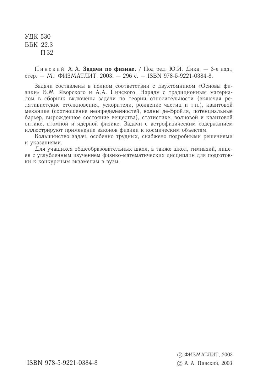 Задачи составлены в полном соответствии с двухтомником «Основы физики» Б.М. Яворского и А.А. Пинского. Наряду с традиционным материалом в сборник включены задачи по теории относительности (включая релятивистские столкновения, ускорители, рождение частиц и т.п.), квантовой механике (соотношение неопределенностей, волны де-Бройля, потенциальные барьер, вырожденное состояние вещества), статистике, волновой и квантовой оптике, атомной и ядерной физике. Задачи с астрофизическим содержанием иллюстрируют применение законов физики к космическим объектам. Большинство задач, особенно трудных, снабжено подробными решениями и указаниями.Для учащихся общеобразовательных школ, а также школ, гимназий, лицеев с углубленным изучением физико-математических дисциплин для подготовки к конкурсным экзаменам в вузы.