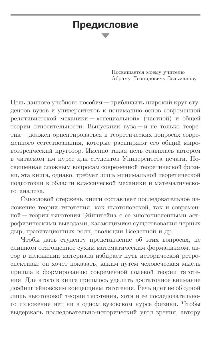 В данном учебном пособии излагается релятивистская (т. е. основанная на теории относительности) механика. Основное внимание уделяется теории тяготения и космологии. Книга рассчитана на преподавателей и студентов вузов; также будет полезна учителям и учащимся старших классов.