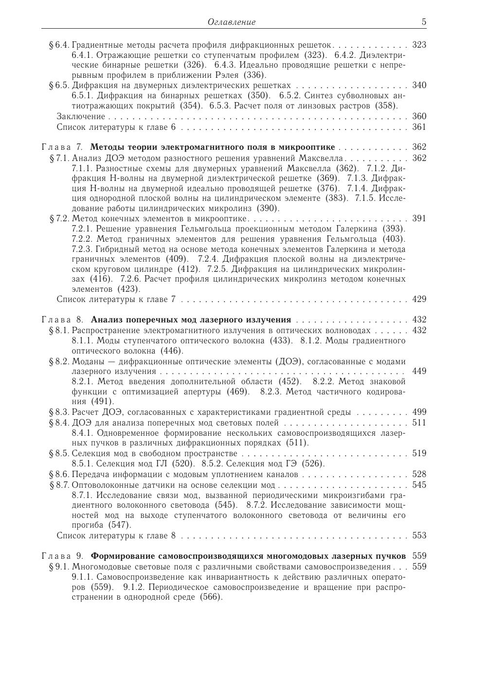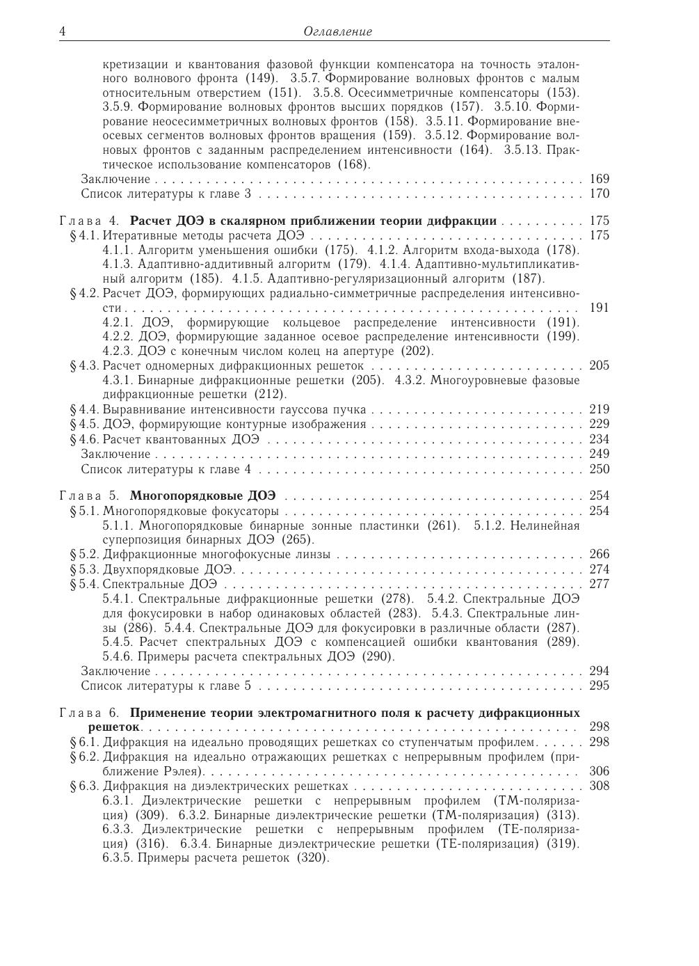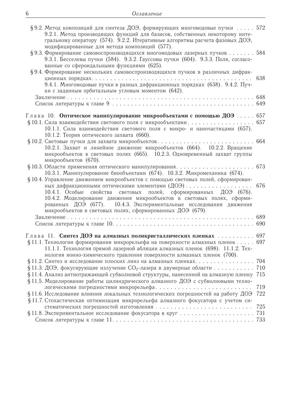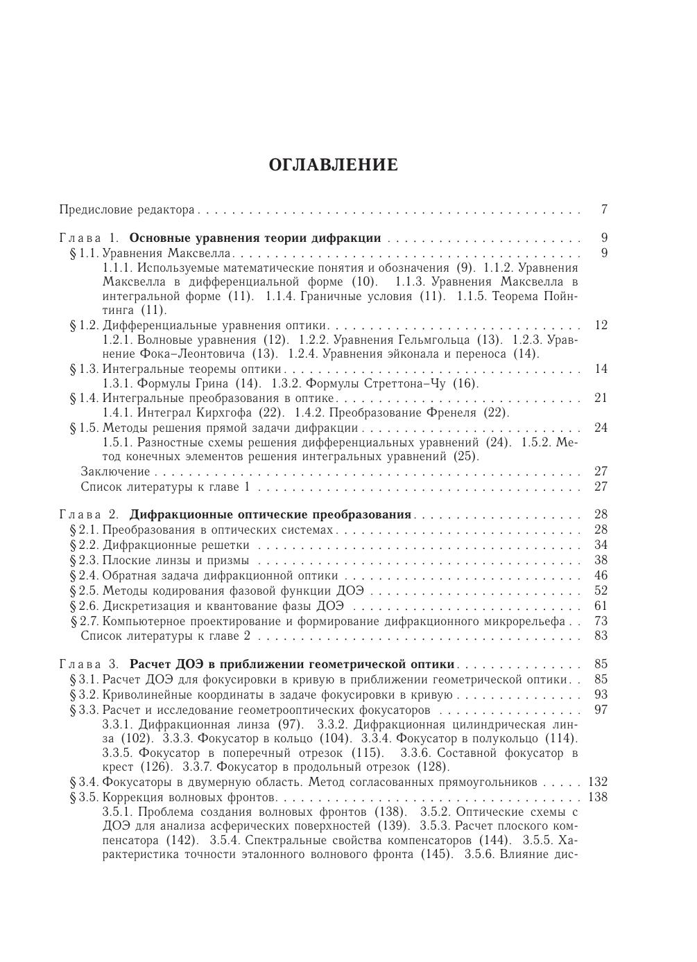 Книга посвящена компьютерному синтезу дифракционных оптических элементов (ДОЭ) с широкими функциональными возможностями преобразования лазерного излучения и исследования свойств волновых полей, полученных в результате такого преобразования. Рассмотрены методы решения обратных задач дифракции: приближение геометрической оптики и скалярное приближение теории дифракции, а также методы теории электромагнитного поля. Основное внимание уделено анализу дифракции электромагнитной волны на элементах микрооптики и дифракционных решетках. Рассмотрены новые типы ДОЭ, формирующие лазерные пучки с замечательными свойствами: лазерные пучки сохраняют свою структуру, вращаются или периодически самовоспроизводятся. Такие лазерные пучки используются при оптическом манипулировании микрообъектами. Рассмотрены также ДОЭ на алмазных пленках, которые используются для преобразования мощного лазерного инфракрасного излучения.В книге много иллюстративного материала, приведены результаты численного моделирования и экспериментов с синтезированными ДОЭ. Для студентов старших курсов специальностей: прикладные математика и физика, прикладная математика и информатика, оптика, а также для аспирантов и специалистов, работающих в соответствующих областях.