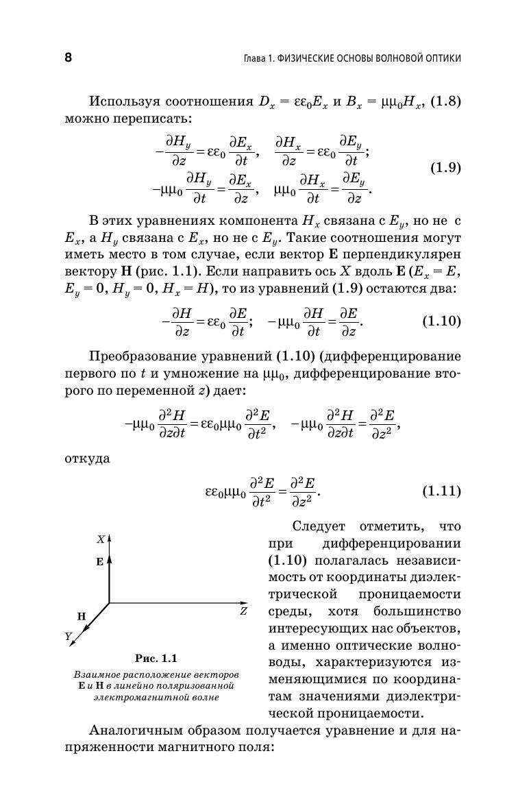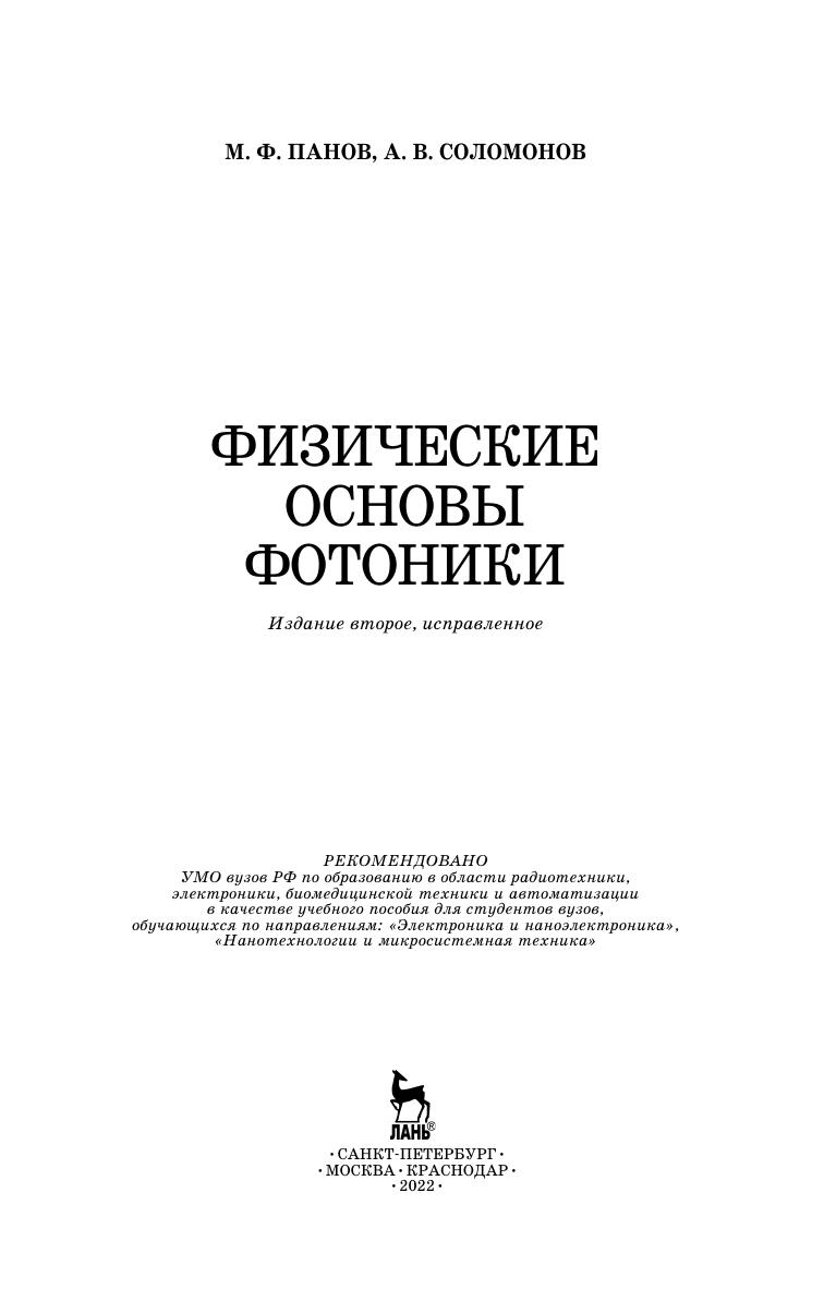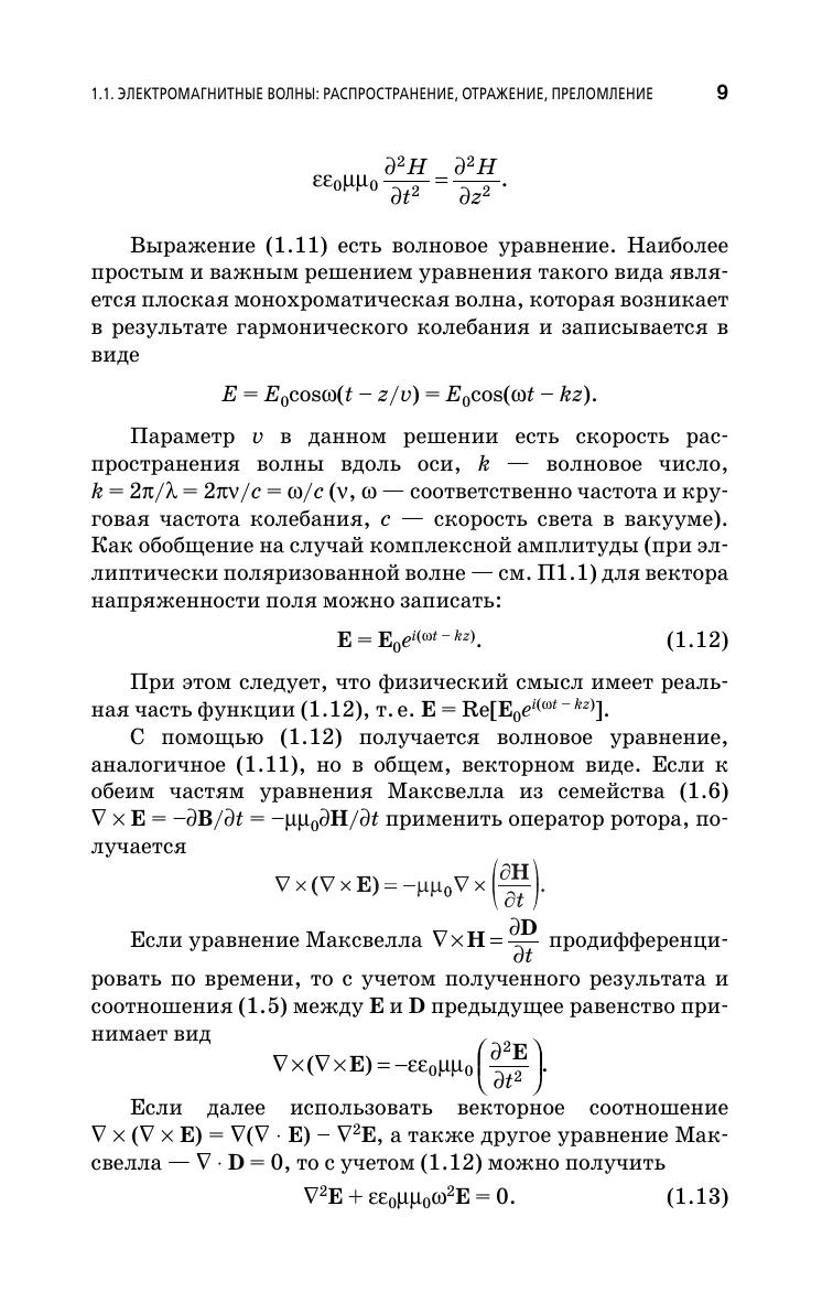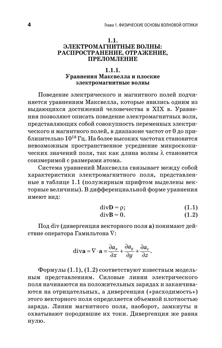 Рассмотрены основные свойства электромагнитных волн, законы распространения, отражения и преломления, законы кристаллооптики, электронная теория дисперсии, физические эффекты, используемые для преобразования оптического излучения, законы распространения электромагнитных волн по световодам, основные компоненты устройств интегральной оптики, а также основные принципы ближнепольной оптики и микроскопии. Вопросы магнитооптики рассмотрены с применением тензорного анализа, а принципы распространения света через волноведущие среды — с использованием результатов теории связанных мод, представленной в приложении пособия. Приведены конкретные примеры практической реализации рассматриваемых законов и эффектов. Книга рекомендована в качестве учебного пособия для студентов вузов, обучающихся по направлениям «Электроника и наноэлектроника», «Нанотехнология и микросистемная техника», «Фотоника и оптоинформатика».