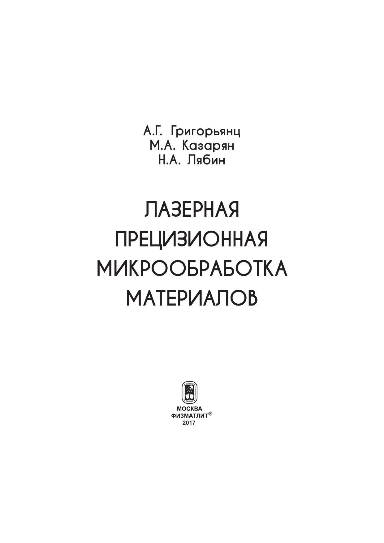Авторы: Григорьянц А.Г., Казарян М.А., Лябин Н.А.