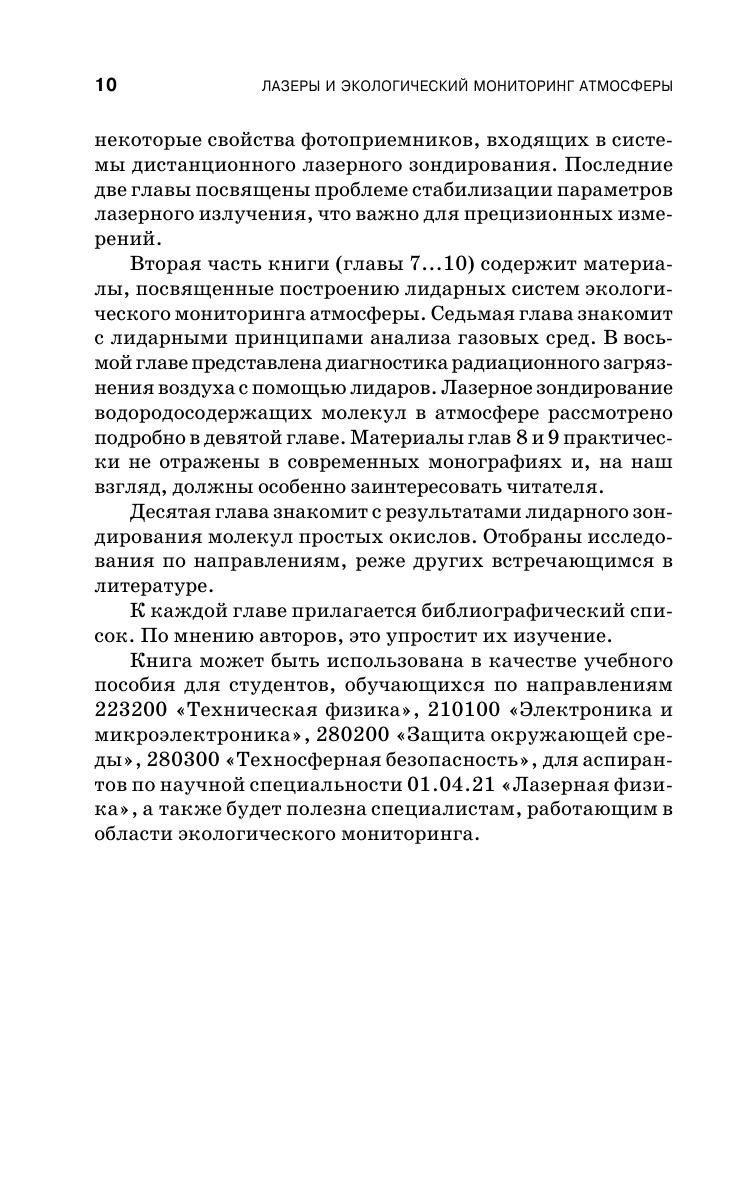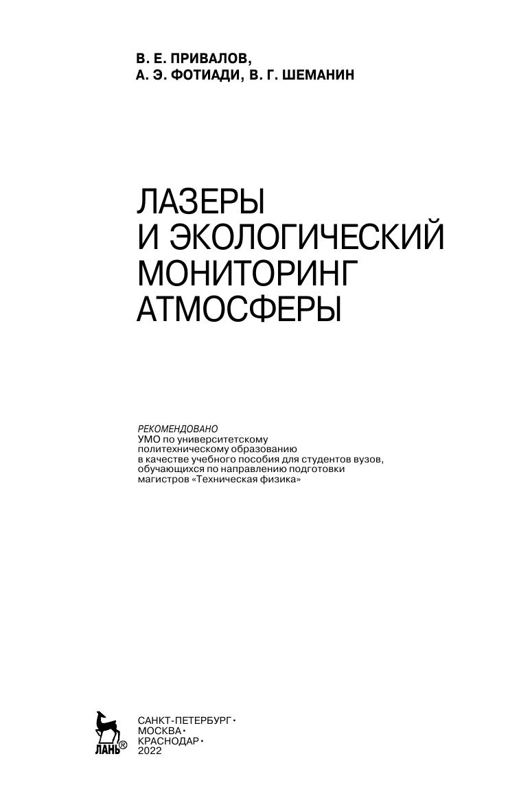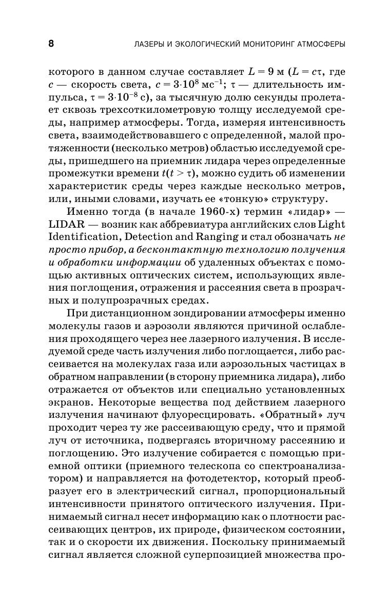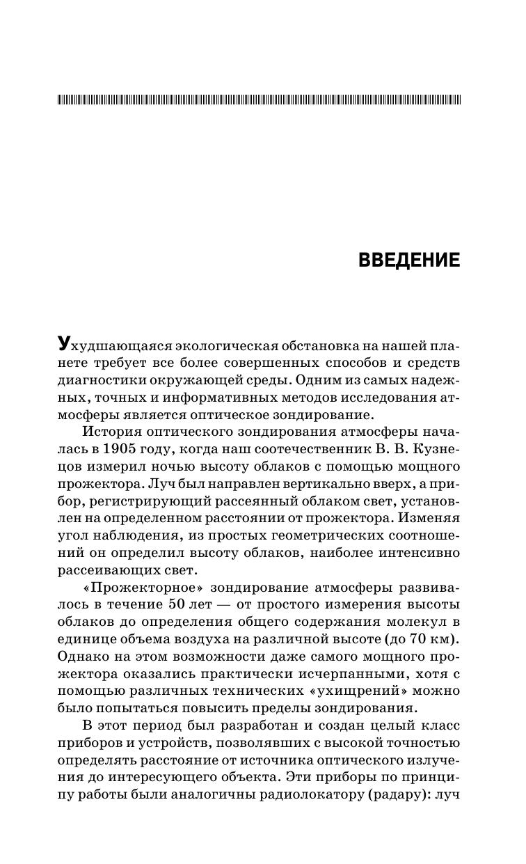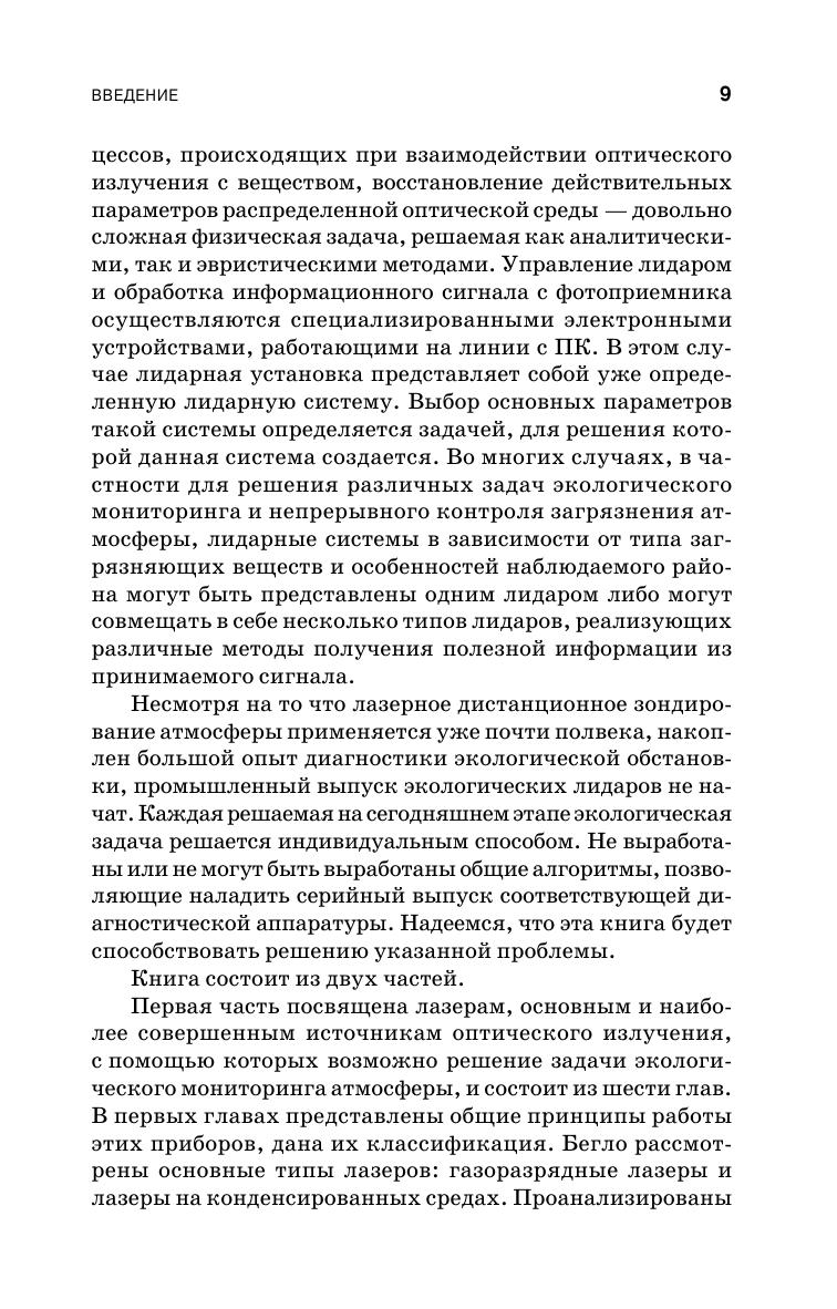Рассмотрены современные методы лидарного мониторинга окружающей среды. Дан анализ литературы по лазерному зондированию атмосферы, сформулированы принципы лазерного мониторинга окружающей среды и выработаны требования к параметрам лазерного излучения, обеспечивающим наибольшую чувствительность и избирательность лидарных систем. Изложены принципы действия лидаров, приведены результаты численных расчетов с помощью лидарных уравнений для комбинационного рассеяния света и дифференциального поглощения и рассеяния концентраций молекул фтороводорода и углеводородов. Книга содержит обширный справочный материал для выполнения расчетных работ. Предназначена для студентов, обучающихся по направлению «Техническая физика», а также аспирантов и специалистов, занимающихся экологическим мониторингом и защитой окружающей среды.