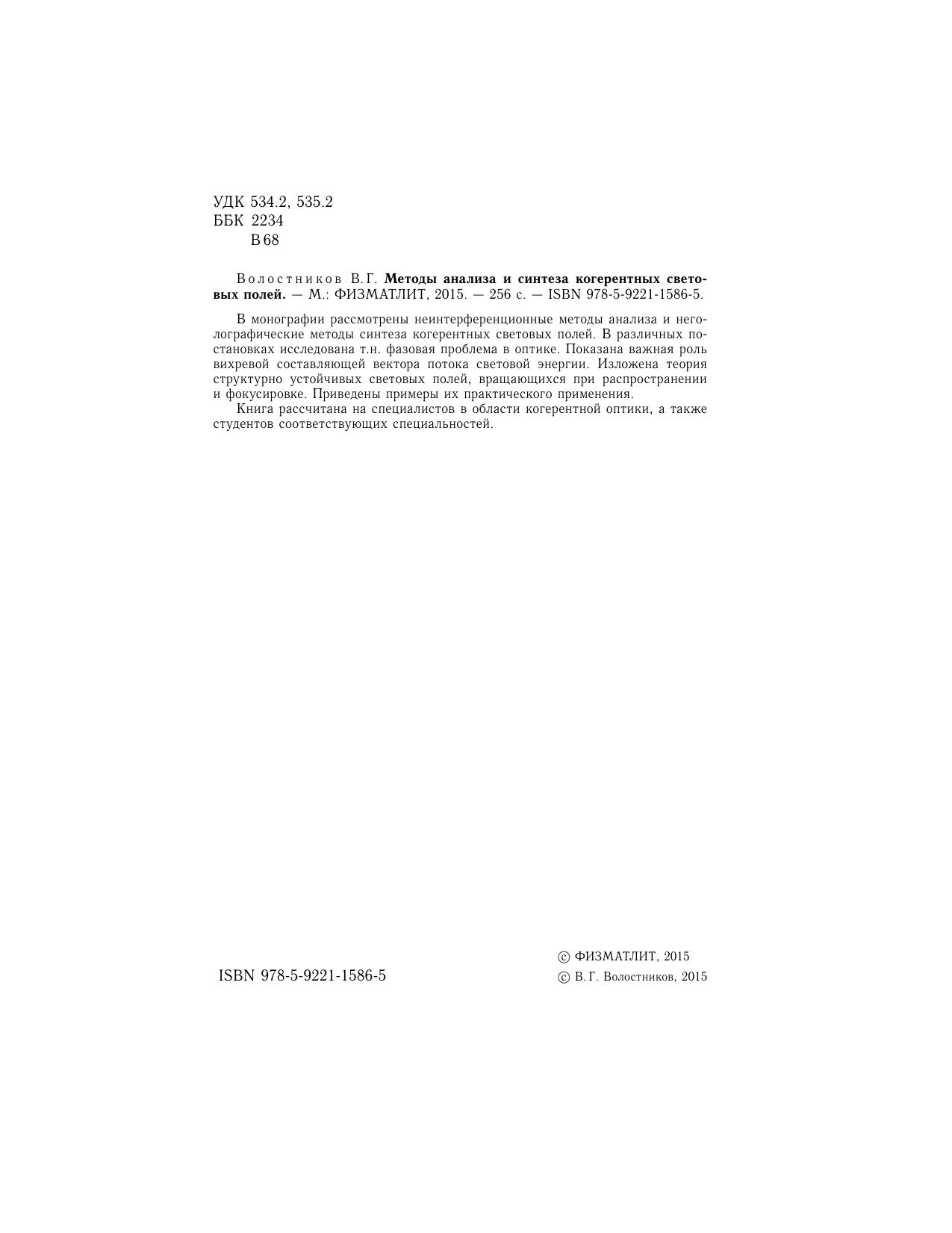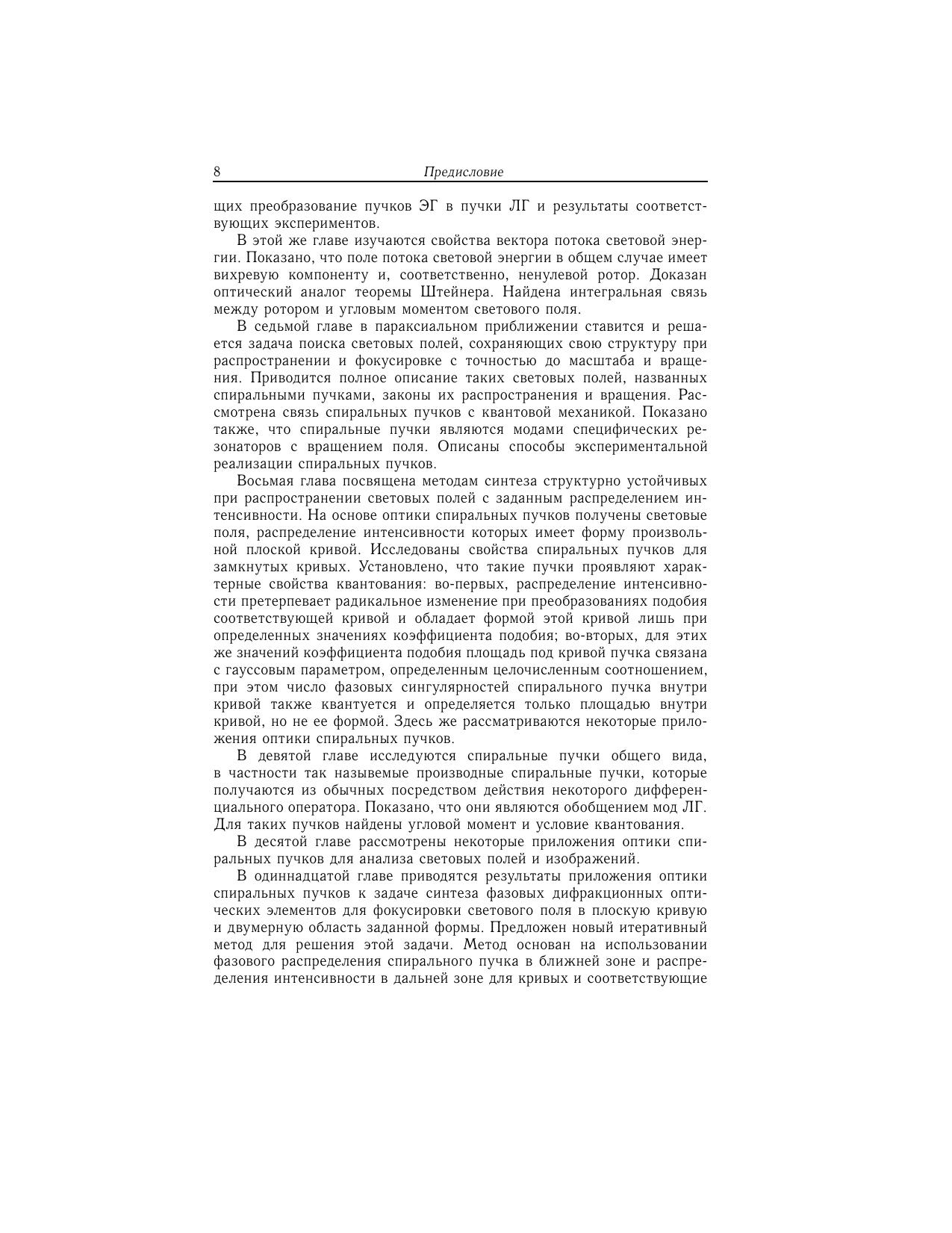 В монографии рассмотрены неинтерференционные методы анализа и неголографические методы синтеза когерентных световых полей. В различных постановках исследована т.н. фазовая проблема в оптике. Показана важная роль вихревой составляющей вектора потока световой энергии. Изложена теория структурно устойчивых световых полей, вращающихся при распространении и фокусировке. Приведены примеры их практического применения.