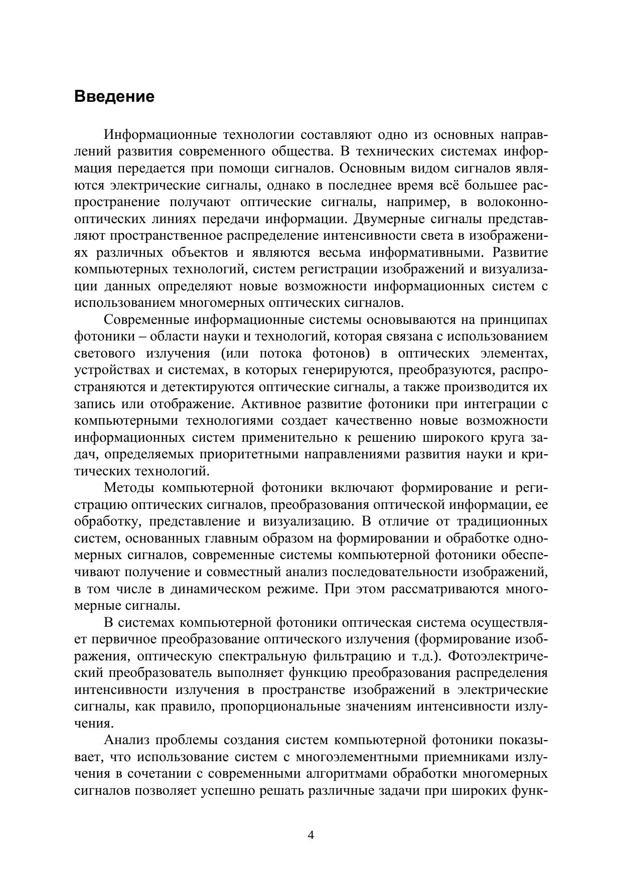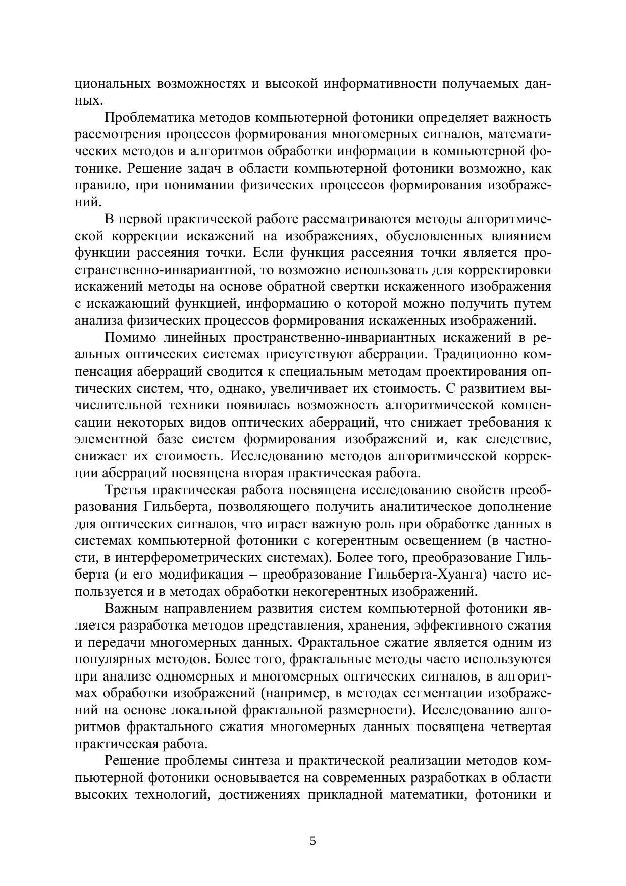Рассмотрены методы компьютерной обработки, часто используемые в различных приложениях компьютерной фотоники, в том числе алгоритмы улучшения качества изображений, коррекции влияния оптических аберраций, сжатия информации. Пособие адресовано студентам, обучающимся по направлению 12.04.03 – "Фотоника и оптоинформатика", а также аспирантам и специалистам, интересующимся проблематикой компьютерной фотоники.