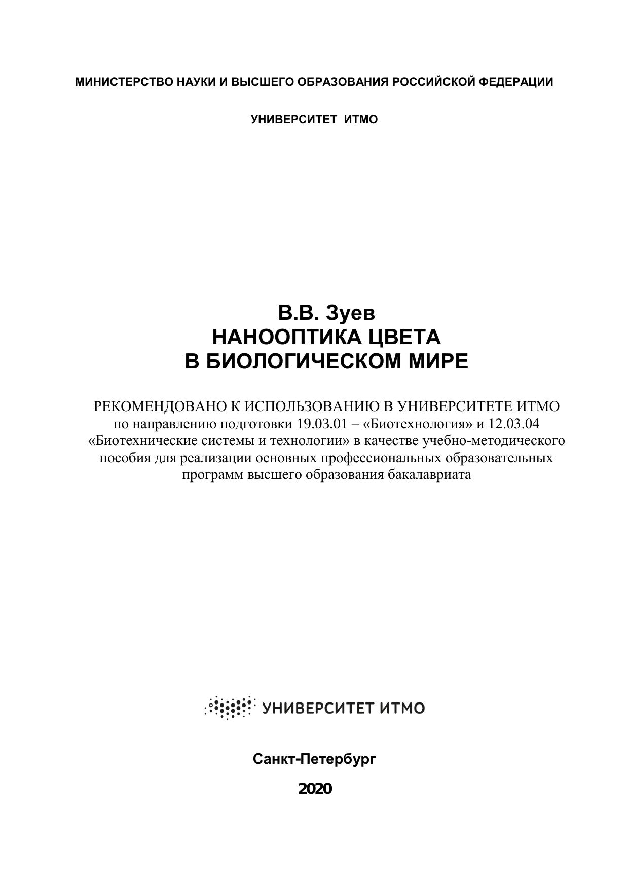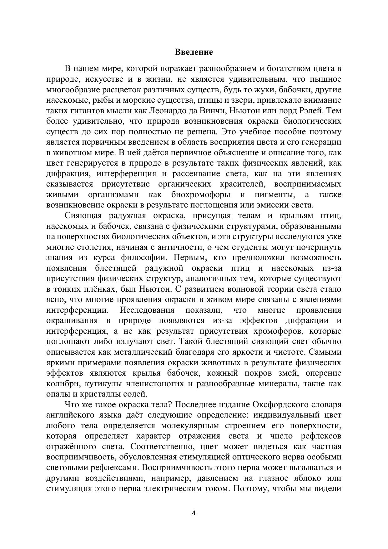 В учебно-методическом пособии изложены основные принципы возникновения окраски в животном мире, основные оптические явления, объясняющие этот феномен, и принципы создания в природе нанообъектов. Методические указания предназначены для бакалавров обучающимся по направлению подготовки 19.03.01 – «Биотехнология» и 12.03.04 «Биотехнические системы и технологии» Методические указания содержат изложение основ формирования цвета в живой природе.