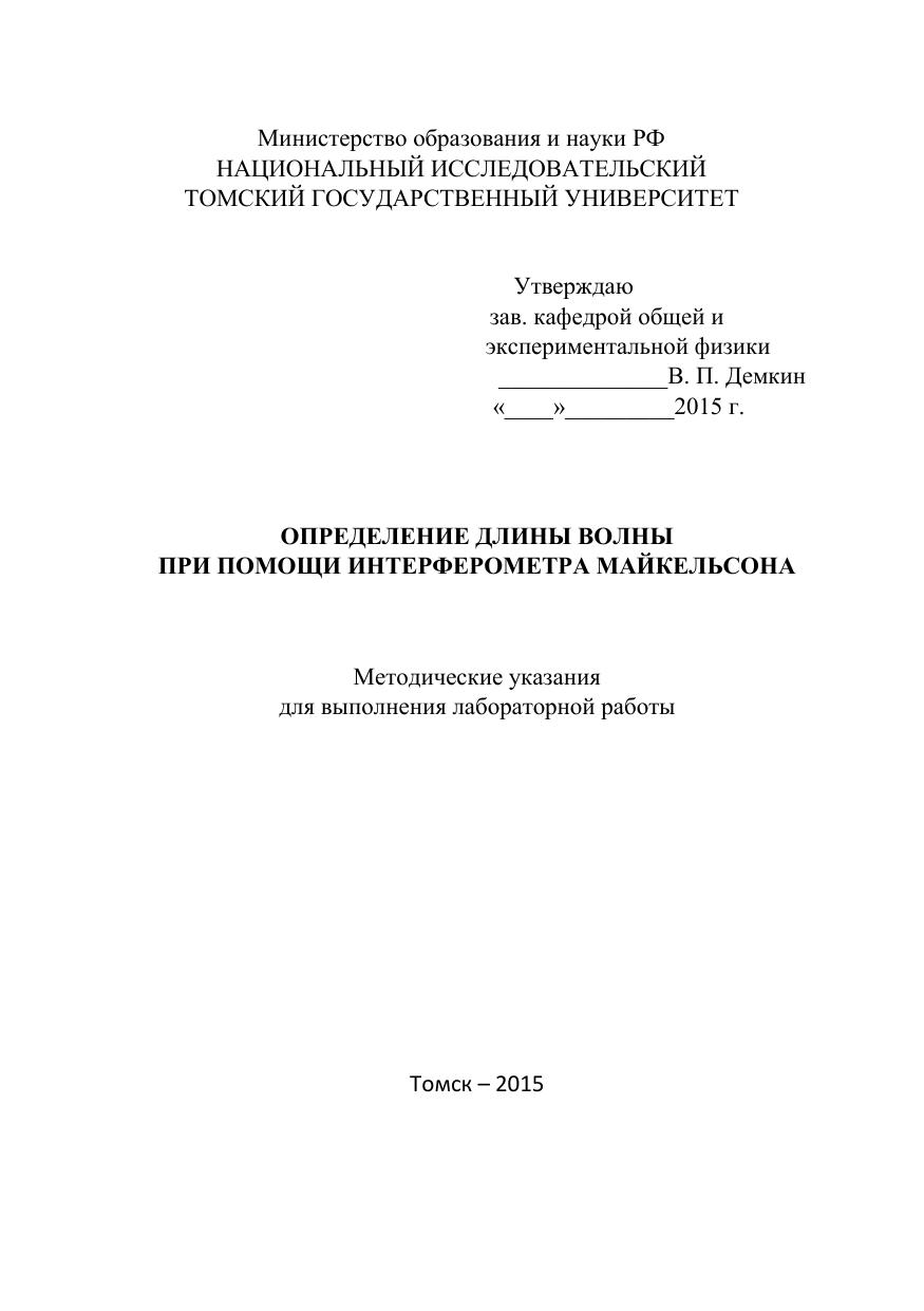Определение длины волны при помощи интерферометра майкельсона. Методические указания для выполнения лабораторной работы