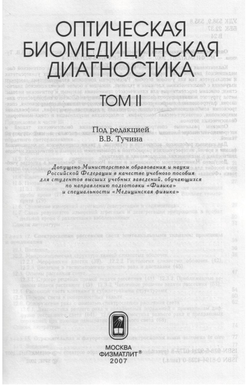 Оптическая биомедицинская диагностика, Том 2.