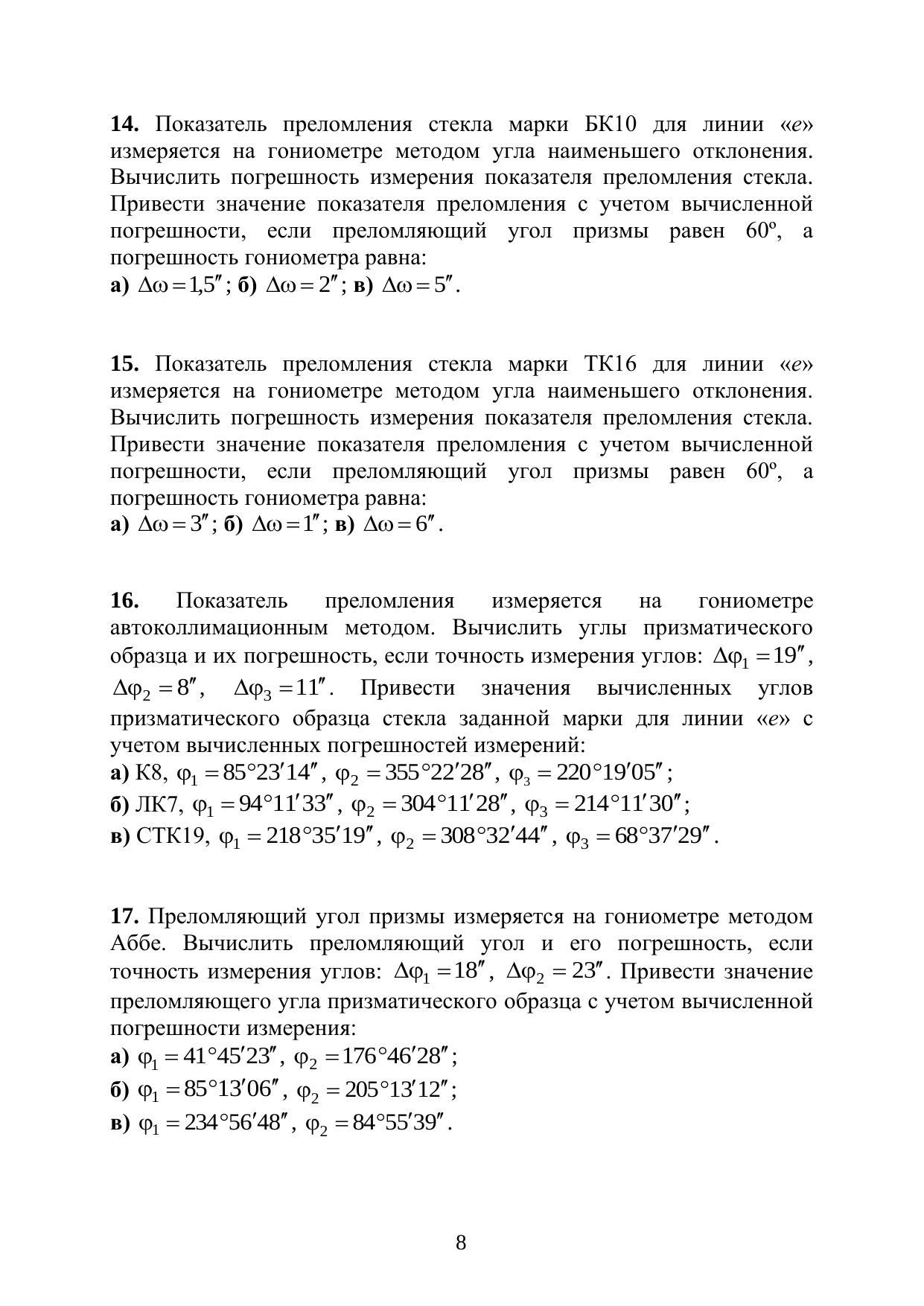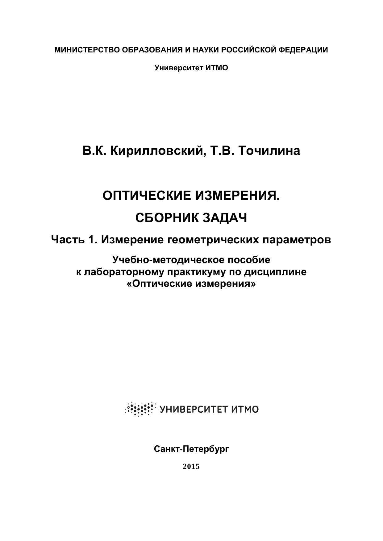 Оптические измерения. Сборник задач. Часть 1. Измерение геометрических параметров. Учебно-методическое пособие к лабораторному практикуму по дисциплине «Оптические измерения»