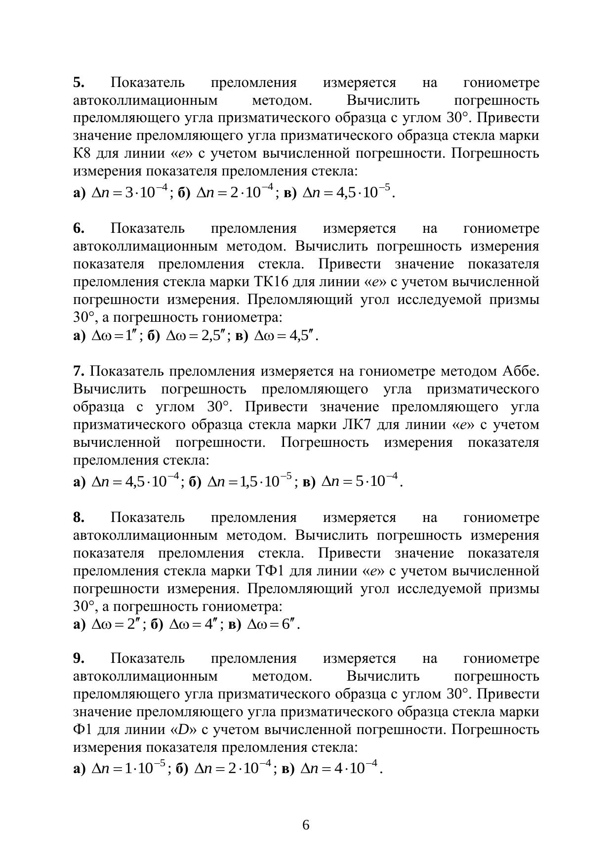 В пособии представлены задачи, решение которых позволит закрепить знания, полученные при изучении дисциплины «Оптические измерения», глубже понять физический смысл лабораторного практикума и грамотно оценить точность выполненных измерений. Формулировке задач предшествует краткое изложение соответствующего раздела оптических измерений и необходимые соотношения для выполнения численных расчетов при решении задач. Учебное пособие предназначено для студентов по направлению подготовки 200400 – Оптотехника, а также может быть полезным для инженерно-технических работников, занимающихся проектированием оптических систем, конструированием оптических приборов и для технологов оптического производства. Учебное пособие подготовлено на кафедре Прикладной и компьютерной оптики Университета ИТМО.