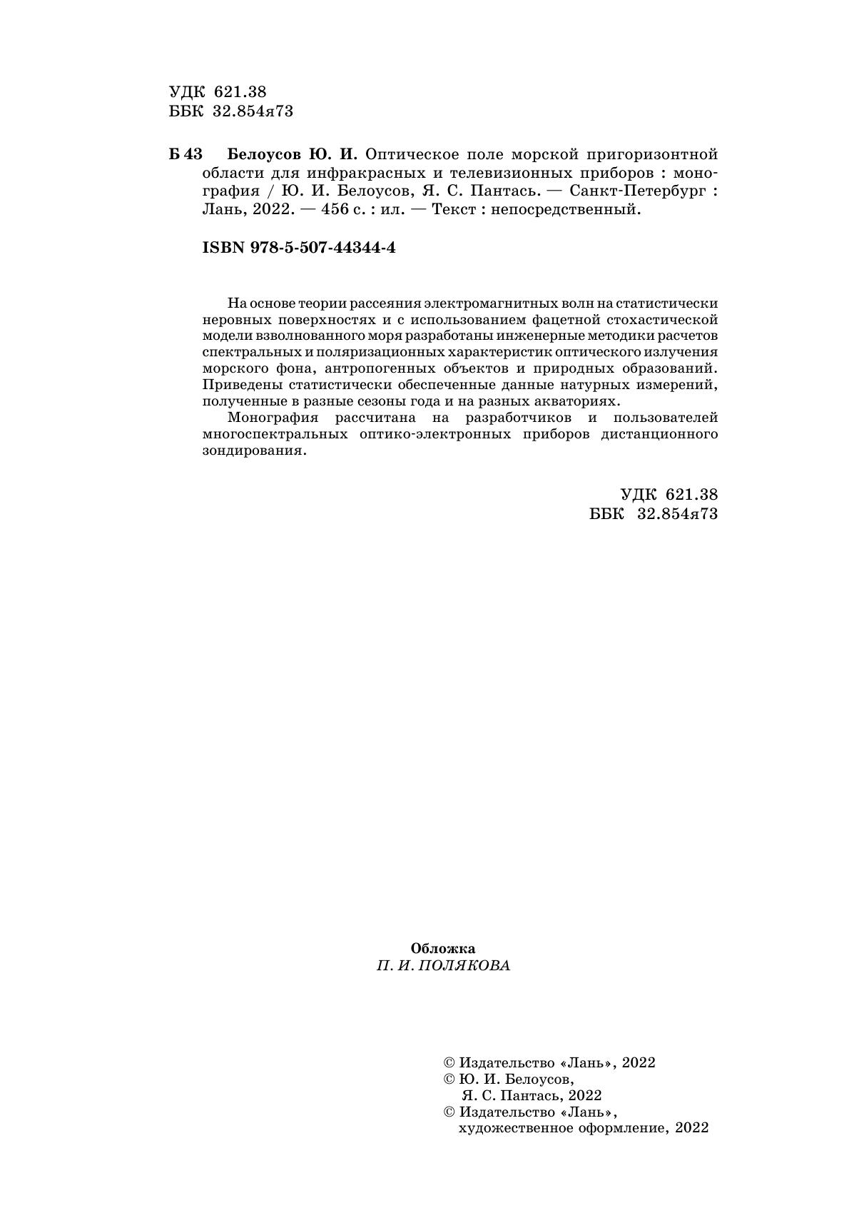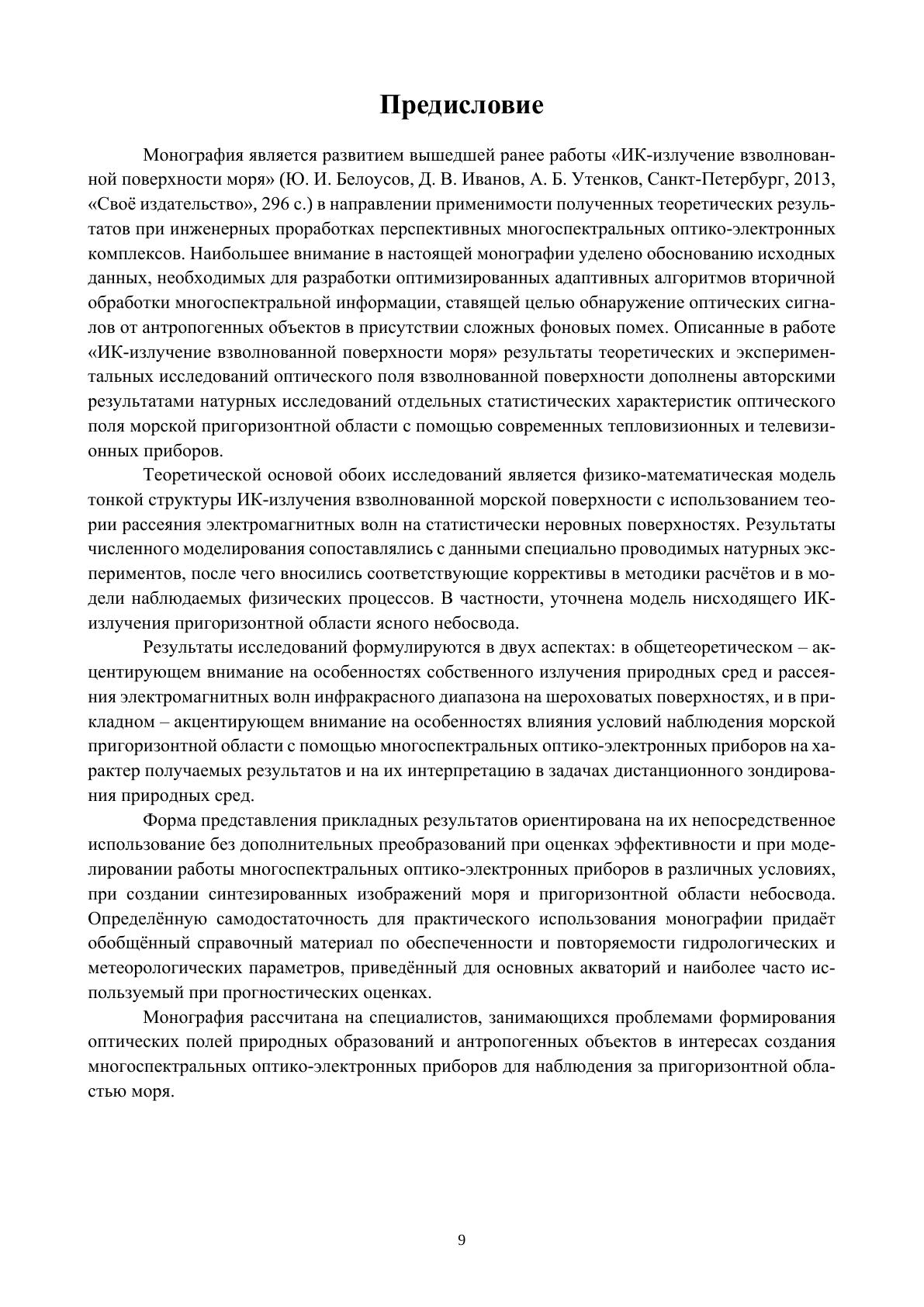 На основе теории рассеяния электромагнитных волн на статистически неровных поверхностях и с использованием фацетной стохастической модели взволнованного моря разработаны инженерные методики расчетов спектральных и поляризационных характеристик оптического излучения морского фона, антропогенных объектов и природных образований. Приведены статистически обеспеченные данные натурных измерений, полученные в разные сезоны года и на разных акваториях. Монография рассчитана на разработчиков и пользователей многоспектральных оптико-электронных приборов дистанционного зондирования.