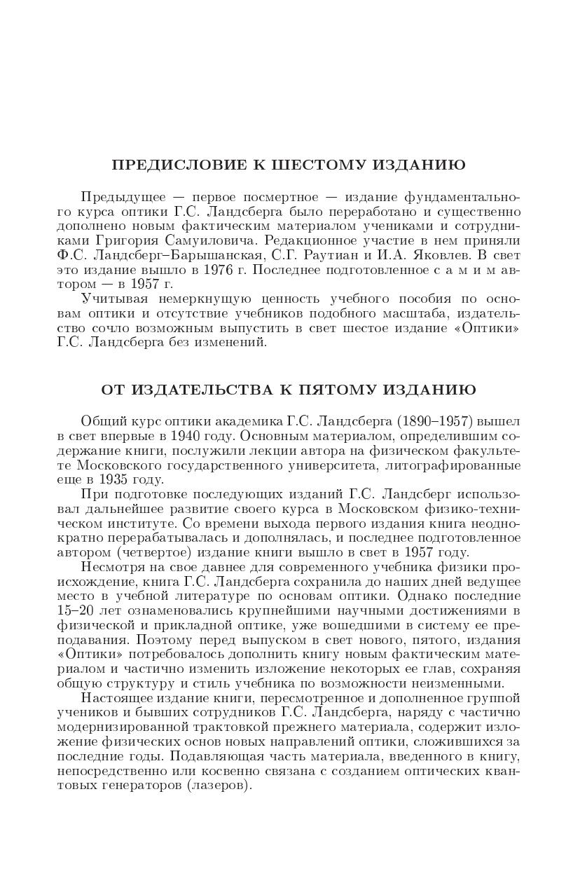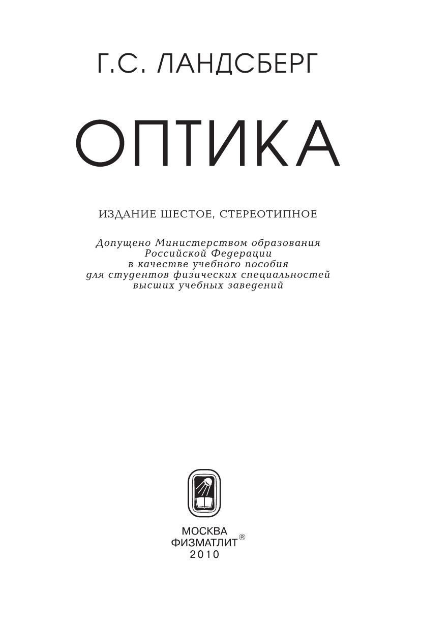 Шестое стереотипное издание учебного пособия по основам оптики. Предыдущее — пятое — издание (1976 г.) было переработано и существенно дополнено учениками и сотрудниками Г. С. Ландсберга. Последнее подготовленное автором издание (четвертое) вышло в 1957 г. Основа книги — лекции, прочитанные автором на физическом факультете Московского государственного университета и затем в Московском физико-техническом институте.Для студентов физических специальностей высших учебных заведений.