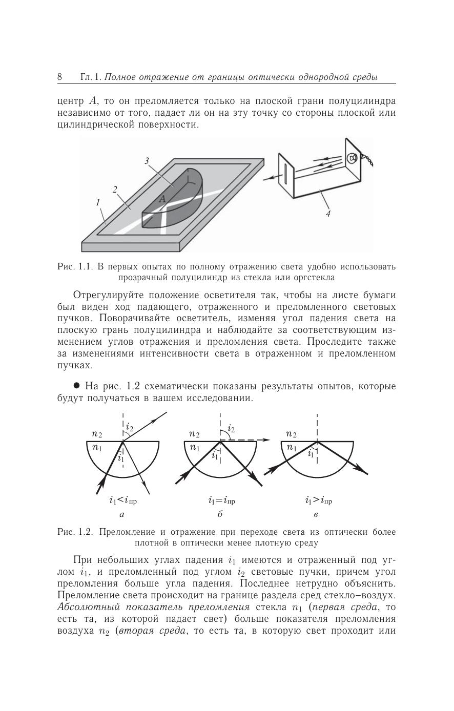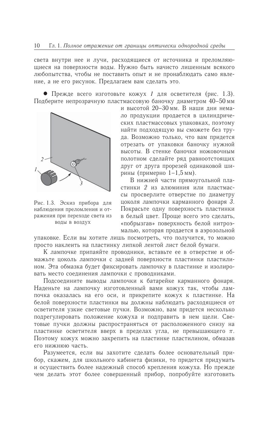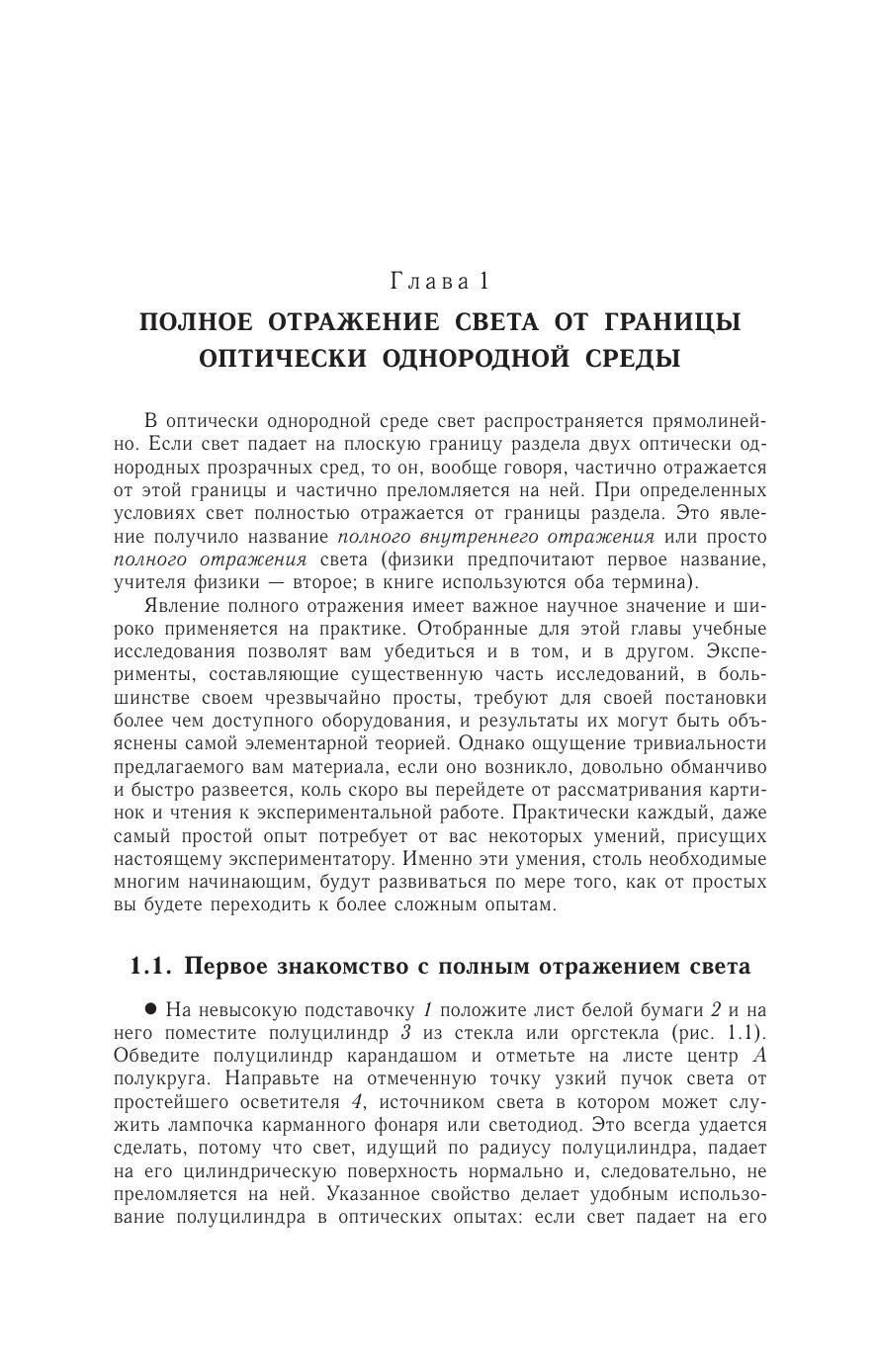 Книга содержит описания учебных экспериментальных исследований явления полного внутреннего отражения от границы оптически однородной и слоисто-неоднородной сред. Предложены простые физические приборы и модели. Рассмотрены занимательные и поучительные опыты. Все эксперименты доступны и могут быть поставлены в школьном физическом кабинете или в домашних условиях. Проводя небольшие исследования, читатель познакомится с красивыми, интересными и практически важными оптическими явлениями, приобретет навыки самостоятельной исследовательской работы. Для учащихся школ, гимназий, лицеев с углубленным изучением физикоматематических дисциплин, а также студентов и преподавателей педагогических вузов, учителей физики.