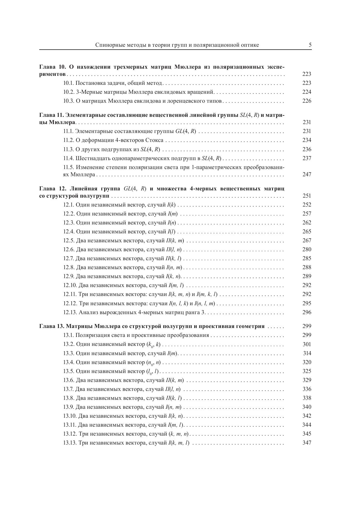 В монографии развито применение линейной параметризации группы GL(4,C) комплексных преобразований в 4-мерном пространстве. За основу берется возможность любую (4×4)-мерную матрицу раскладывать по 16-мерному базису матриц Дирака, тем самым получая унифицированную параметризацию группы и всех ее подгрупп. Изучен вопрос о линейной параметризации унитарной группы SU(4). Исследовано дираковское представление матриц Гелл Манна. Формализм применен к развитию математического аппарата поляризационной оптики Стокса–Мюллера и Джонса, при этом демонстрируется единство математических методов описания симметрии в релятивистской физике с методами, которые используются в поляризационной оптике. В частности, рассмотрено применение в поляризационной оптике 2- и 4-мерных спиноров; восстановление 3- и 4-мерных матриц Мюллера по поляризационным измерениям; приведение мюллеровских квадратичных форм к диагональному виду; описание преобразований Мюллера общего типа подмножествами вырожденных матриц со структурой полугрупп; классификация таких вырожденных преобразований и др. Адресуется научным работникам, преподавателям высших учебных заведений, а также аспирантам и студентам, специализирующимся в области теоретической физики.