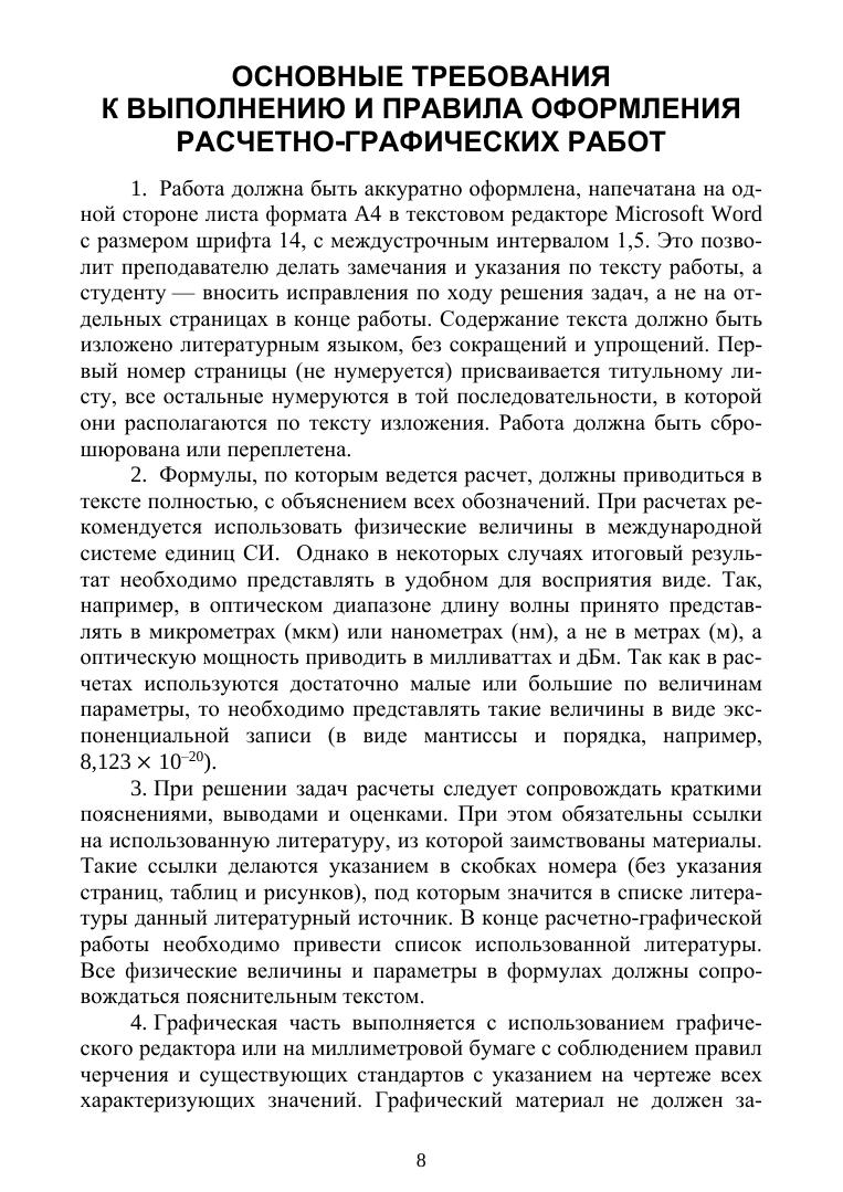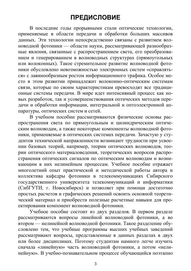 Учебное пособие является теоретическим и дидактическим материалом для выполнения расчетно-графических работ по волноводной фотонике, состоящим из двух разделов: линейной и нелинейной волноводной фотоники. Каждый раздел включает четыре расчетно-графические работы. Индивидуальные задания имеют 36 вариантов реализации. Все задания сопровождаются теоретическим материалом и методическими рекомендациями к расчетам, что позволяет обучающемуся самостоятельно справиться с заданиями, а полученные во время выполнения работ знания и практические навыки создают базу для понимания физических основ как сегодняшних, так и перспективных технологических направлений в волноводной фотонике. Пособие можно использовать как практикум, так как приведенные расчеты в работах применимы для закрепления пройденного теоретического материала на практических занятиях. Учебное пособие предполагает наличие у студентов базовых знаний по физической и квантовой оптике, физическим основам оптической связи, а также основам построения оптических телекоммуникационных систем. Учебное пособие соответствует актуальным требованиям Федерального государственного образовательного стандарта высшего образования и предназначено для подготовки бакалавров и магистров по направлениям подготовки «Фотоника и оптоинформатика», «Инфокоммуникационные технологии и системы связи», а также может быть полезно студентам, интересующимся проектированием интегрально-оптических систем и вопросами передачи оптических сигналов по волноводам.