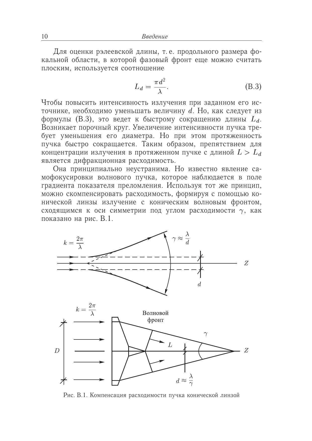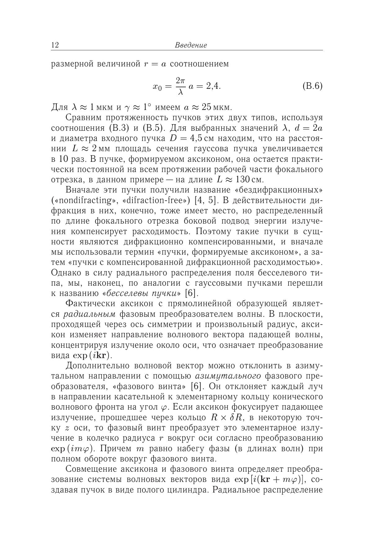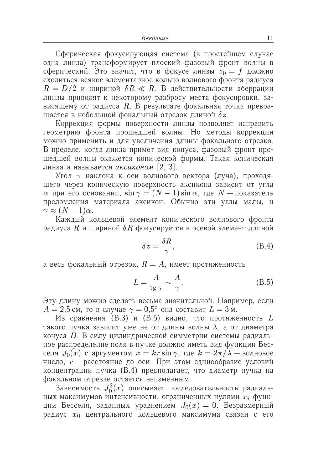 Рассмотрены особенности распространения волнового излучения при аксиконной фокусировке и формирование нерасходящихся пучков с профилем поля вв иде функций Бесселя. В поле лазерного бесселева пучка исследован оптический разряд в газах, жидкостях и на поверхности твердых тел, описаны процессы образования и развития плазменного канала и его структуры. Представлены методы исследования свойств бесселевых пучков и создаваемой ими плазмы. В работе обсуждаются возможные применения бесселевых пучков и демонстрируются решения некоторых прикладных задач.Для студентов, аспирантов и научных работников, специализирующихся в области физической оптики и акустики, формирования и распространения волновых пучков, физики плазмы, лазерной диагностики плазмы и плазмоподобных сред.