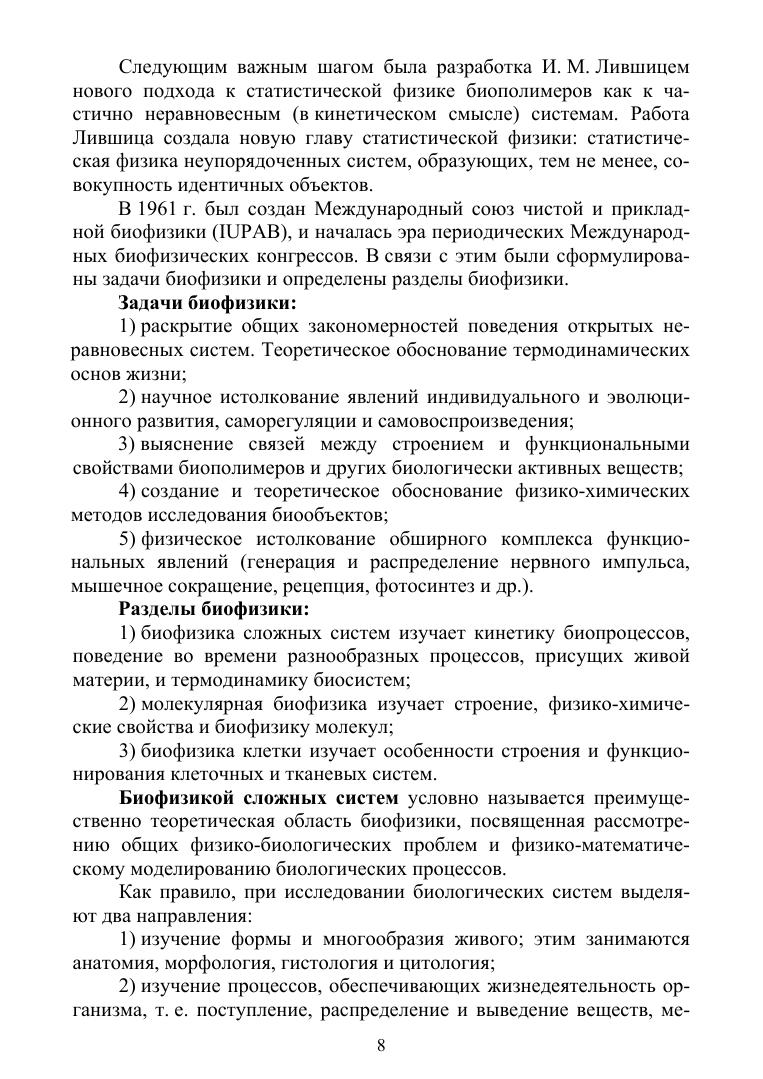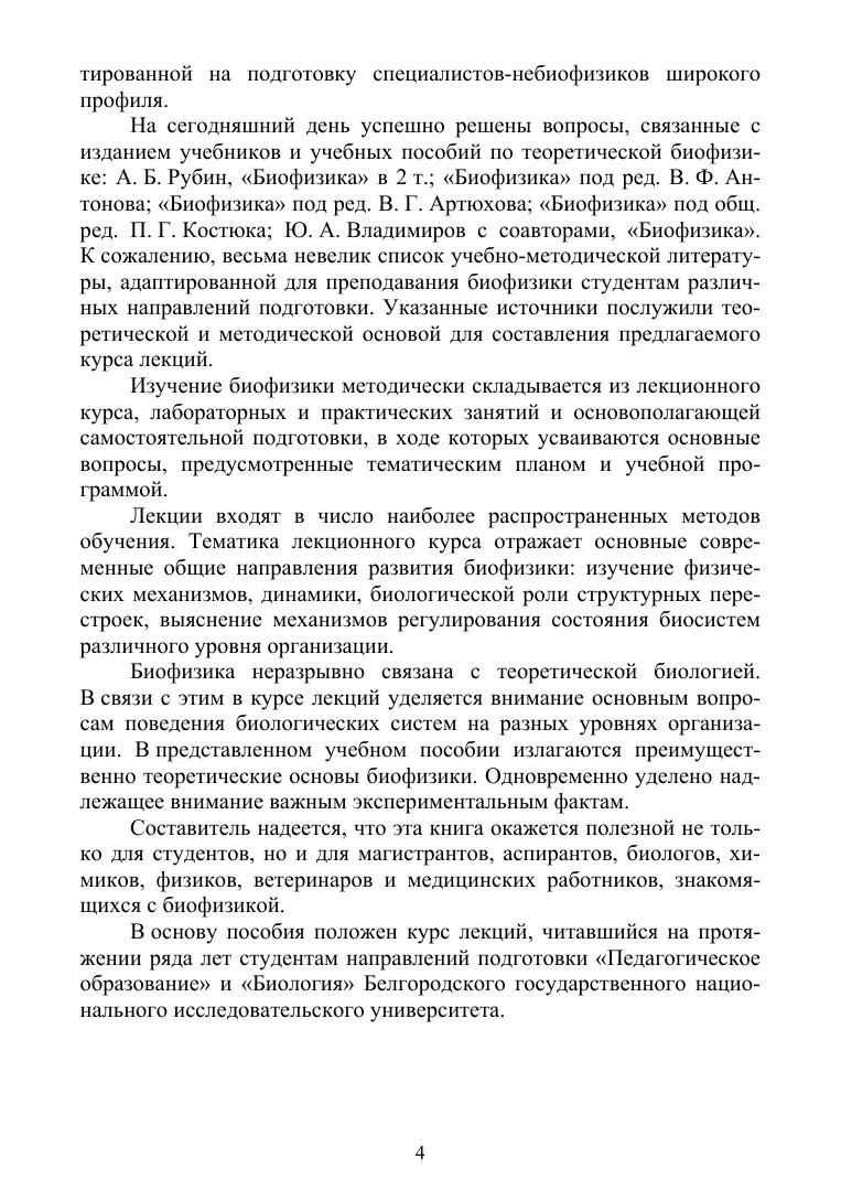 В курсе лекций рассмотрены основные вопросы биофизики в русле учебной программы, построенной в соответствии с системой физических и физико-химических процессов, лежащих в основе жизни. Пособие составлено в соответствии с типовой программой курса «Биофизика» для студентов, обучающихся по направлению подготовки «Биология». В курсе лекций представлены разделы современной биофизики: биофизика сложных систем, молекулярная биофизика, биофизика клетки. Учебное пособие предназначено для студентов биологических факультетов университетов и педагогических вузов, студентов медицинских и сельскохозяйственных вузов.