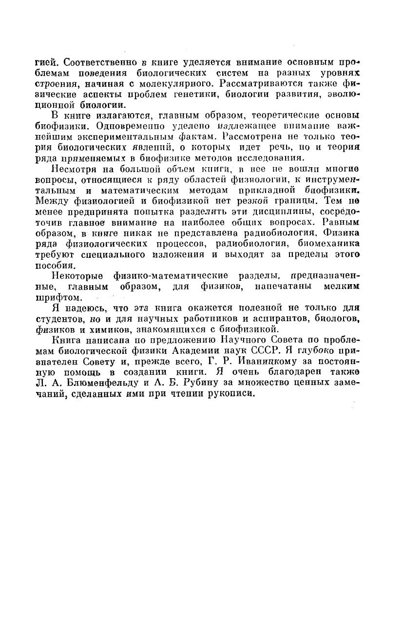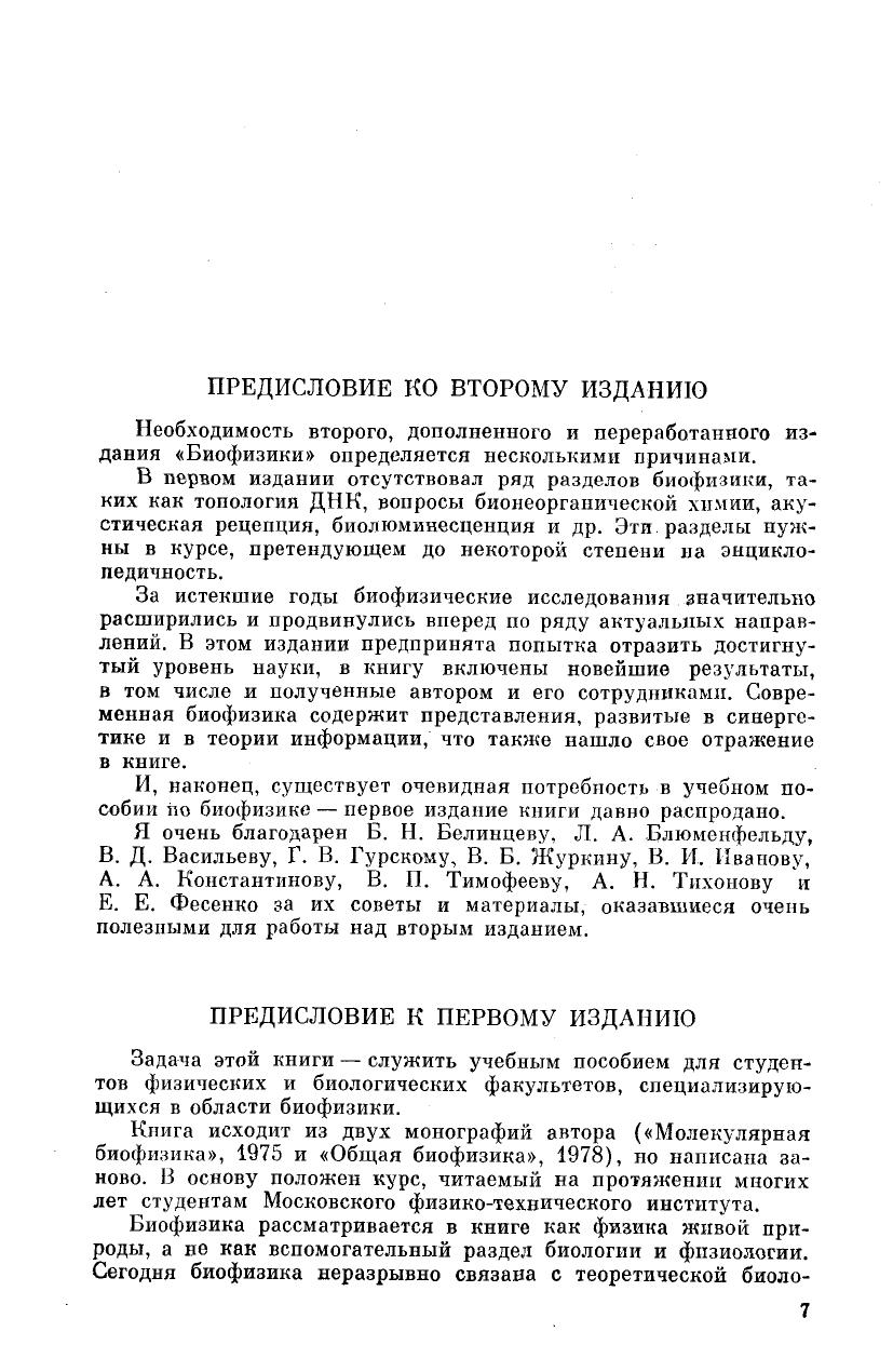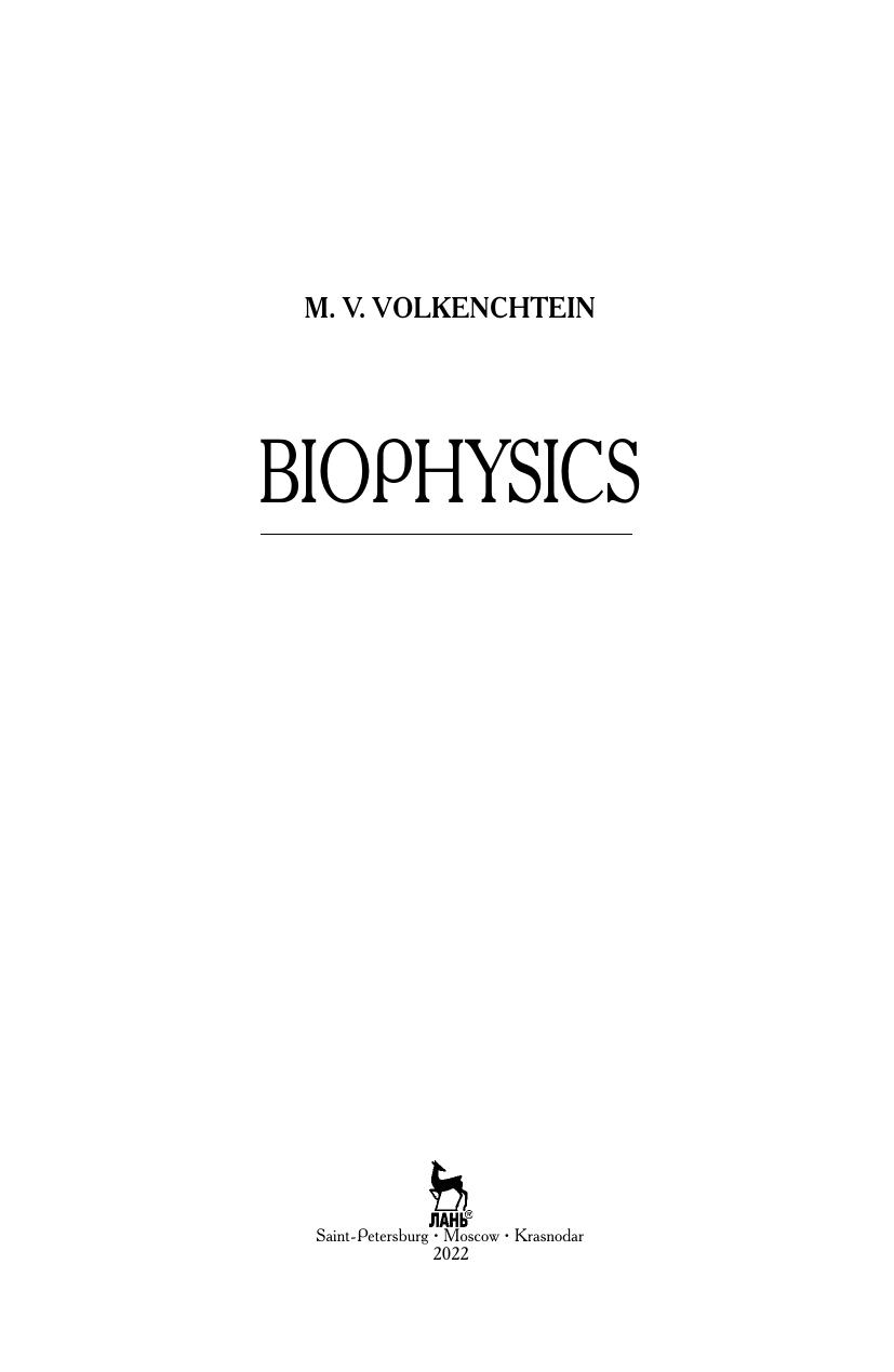 «Биофизика» М. В. Волькенштейна — энциклопедический курс, излагающий основные разделы предмета: молекулярную биофизику, биофизику клетки и биофизику сложных систем, включая проблемы биологической эволюции. Второе издание было переработано, в него вошли новые разделы — бионеорганическая химия и биофизика, топология ДНК, акустическая рецепция, биолюминесценция и др. Настоящее издание выходит без изменений. Учебное пособие адресовано студентам — биологам и физикам, специализирующимся в области биофизики и физико-химической биологии.