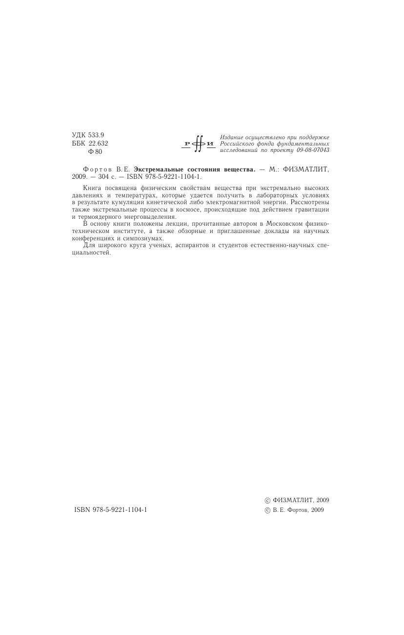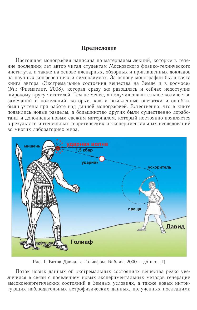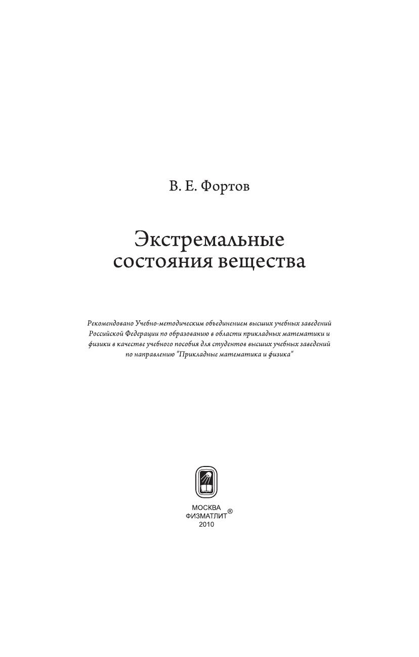 Книга посвящена физическим свойствам вещества при экстремально высоких давлениях и температурах, которые удается получить в лабораторных условиях в результате кумуляции кинетической либо электромагнитной энергии. Рассмотрены также экстремальные процессы в космосе, происходящие под действием гравитации и термоядерного энерговыделения. В основу книги положены лекции, прочитанные авторомв Московском физико-техническомин ституте, а также обзорные и приглашенные доклады на научных конференциях и симпозиумах. Для широкого круга ученых, аспирантов и студентов естественно-научных специальностей.
