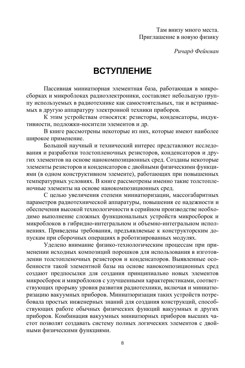 В книге показана возможность физико-технических подходов в преодолении проблем в области создания миниатюрной элементной базы радиоэлектроники, которая имеет технические характеристики, соответствующие прорыву уровня развития радиотехники.