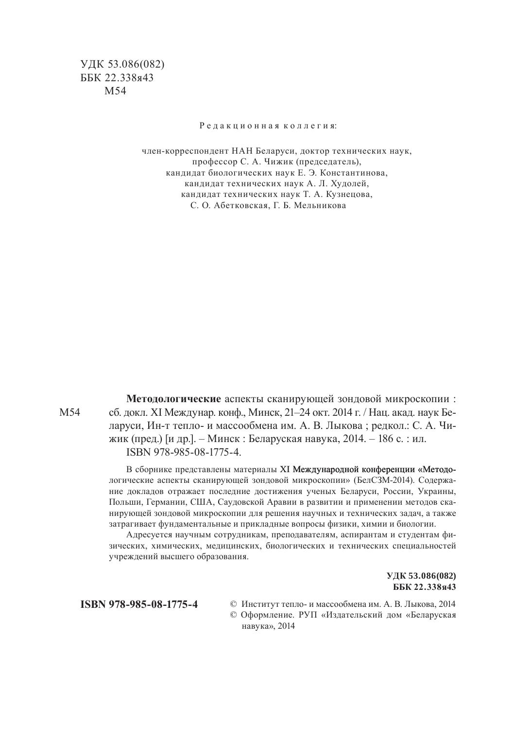 Методологические аспекты сканирующей зондовой микроскопии: сборник докладов XI Международной конференции, Минск, 21–24 окт. 2014 г.