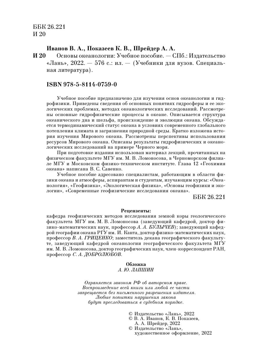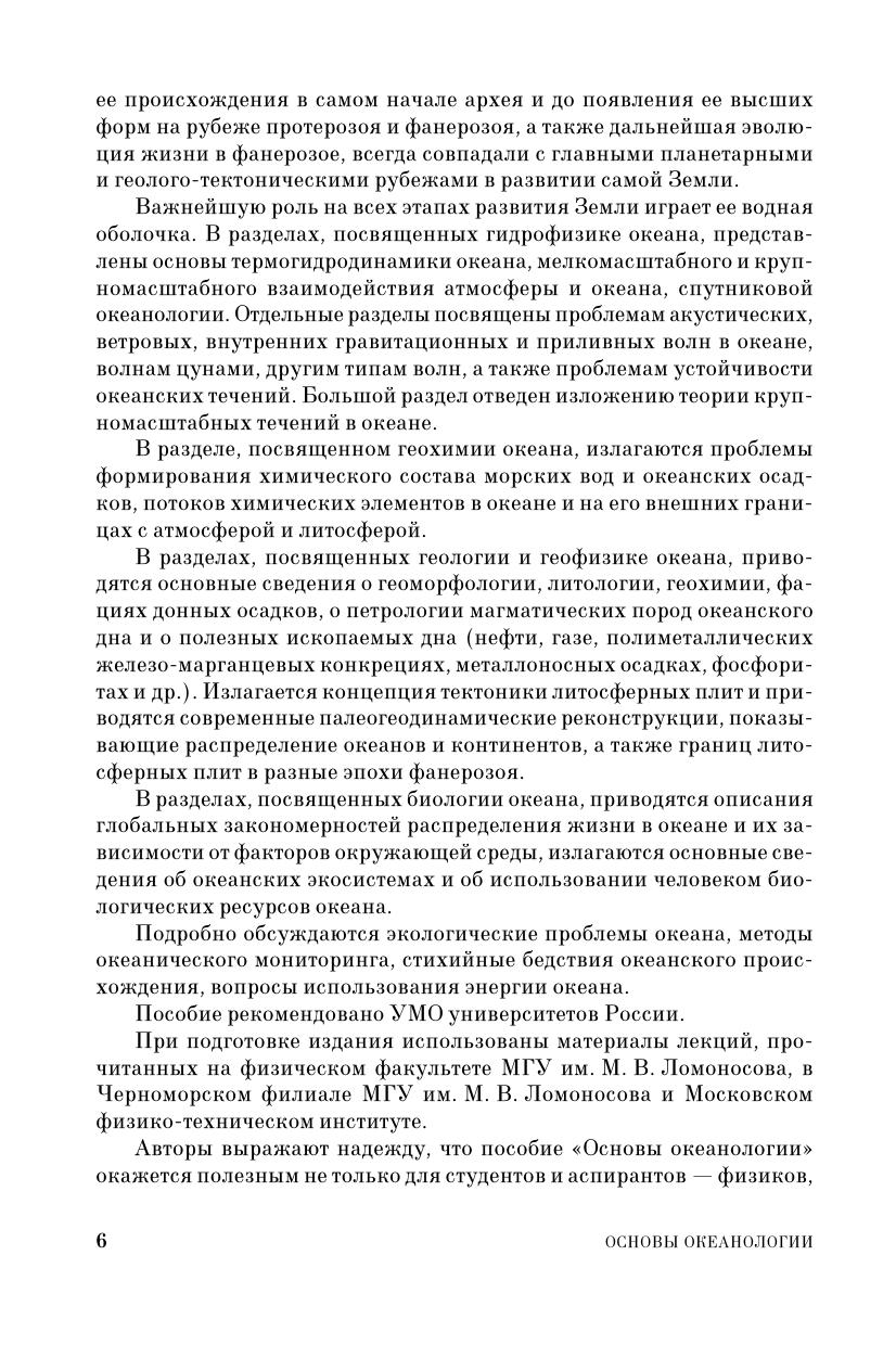 Учебное пособие предназначено для изучения основ океанологии и гидрофизики. Приведены сведения об основных понятиях гидросферы и ее экологических проблемах, методах океанологических исследований. Рассмотрены основные гидрофизические процессы в океане. Описывается структура океанического дна и шельфа, происхождение и эволюция океана. Обсуждается термодинамический статус океана в условиях современного глобального потепления климата и загрязнения природной среды. Кратко изложена история изучения Мирового океана. Рассмотрены перспективы использования ресурсов Мирового океана. Описаны результаты гидрофизических и океанологических исследований на примере Черного моря. При подготовке издания использован материал лекций, прочитанных на физическом факультете МГУ им. М. В. Ломоносова, в Черноморском филиале МГУ и Московском физико-техническом институте. Глава 12 «Геохимия океана» написана В. С. Савенко. Учебное пособие адресовано специалистам, работающим в области физики океана и атмосферы, аспирантам и студентам, изучающим курсы: «Океанология», «Геофизика», «Экологическая физика», «Основы геофизики и экологии», «Современные геофизические исследования океана».