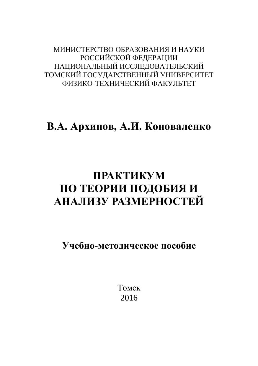 Практикум по теории подобия и анализу размерностей
