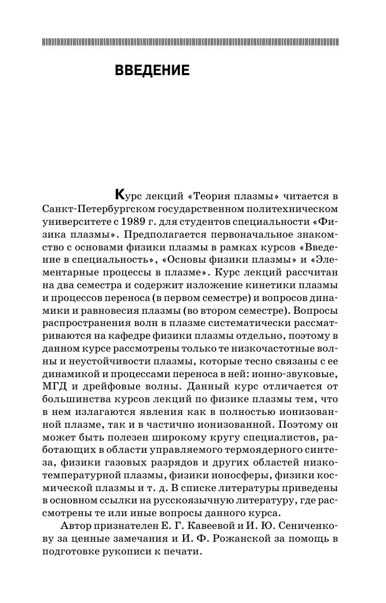 Учебное пособие содержит изложение вопросов кинетики, динамики и равновесия плазмы, а также процессов переноса в ней. Данный курс отличается от большинства курсов лекций по физике плазмы тем, что в нем описываются явления как в полностью ионизованной плазме, так и в частично ионизованной. Пособие предназначено для студентов технических вузов, изучающих управляемый термоядерный синтез, физику газовых разрядов и другие области низкотемпературной плазмы, физику ионосферы, физику космической плазмы и т. д.