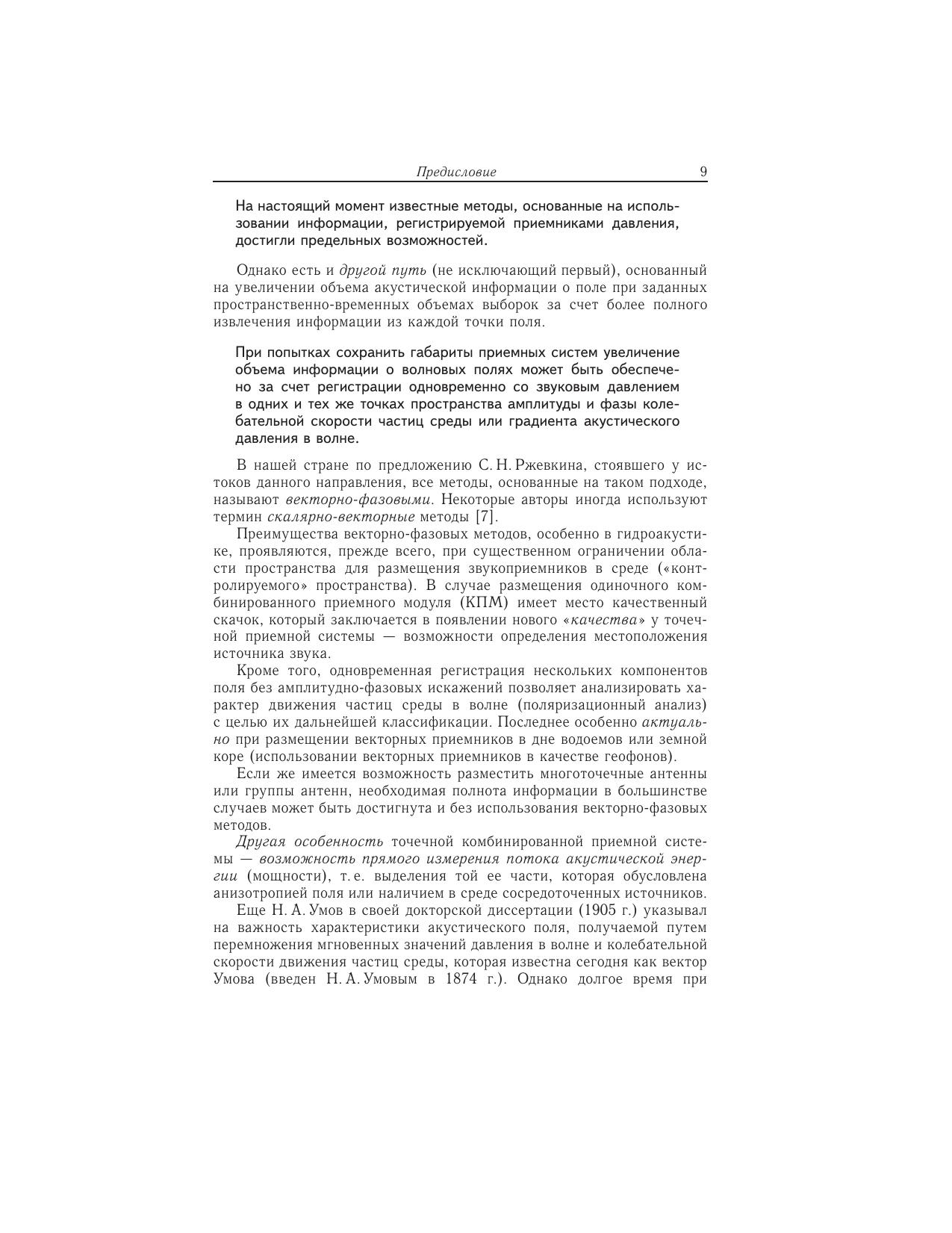 Впервые последовательно, в форме, доступной читателю, далекому от актуальных задач гидроакустики, и вместе с тем на достаточно высоком научном уровне излагается один из интереснейших подходов к регистрации акустических полей, получивший в России название «векторно-фазовые методы». Текст книги представляет собой расширенный вариант курса лекций, читаемого автором на физическом факультете МГУ. Для студентов, аспирантов, а также специалистов, желающих получить достаточно полное представление о возможностях векторно-фазовых методов при решении самых разнообразных акустических задач: обнаружение слабых источников сигнала на фоне шумов, задачи биоакустики, экологии, предсказание землетрясений.
