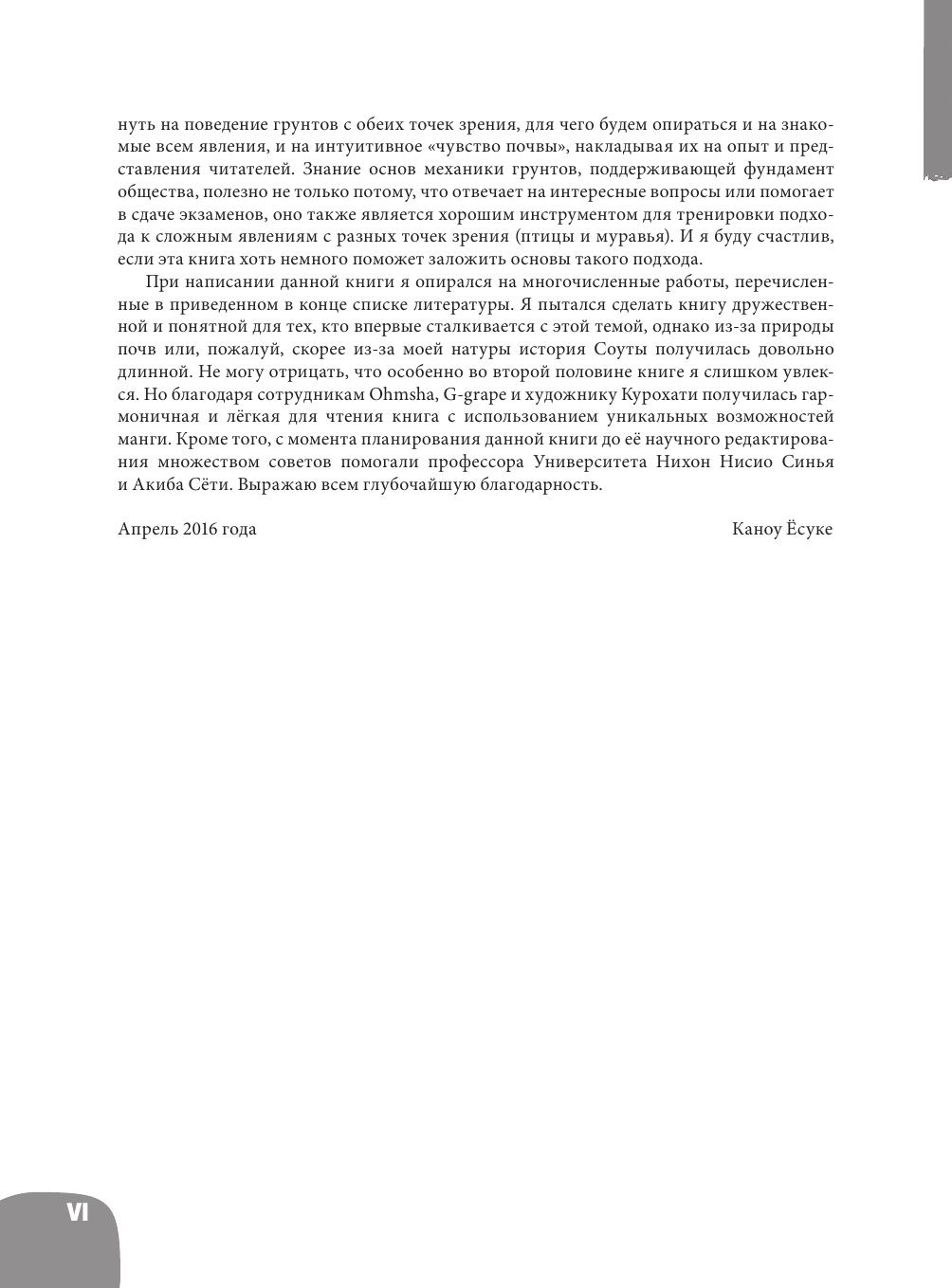 Знание основ механики грунтов позволяет подходить к сложным явлениям с разных позиций: оно предполагает и взгляд на землю с точки зрения птицы в полёте, и взгляд на частицы почвы с точки зрения муравья. Вместе с героями манги читателю предстоит освоить этот комплексный подход и научиться моделировать явления, происходящие в почвах.