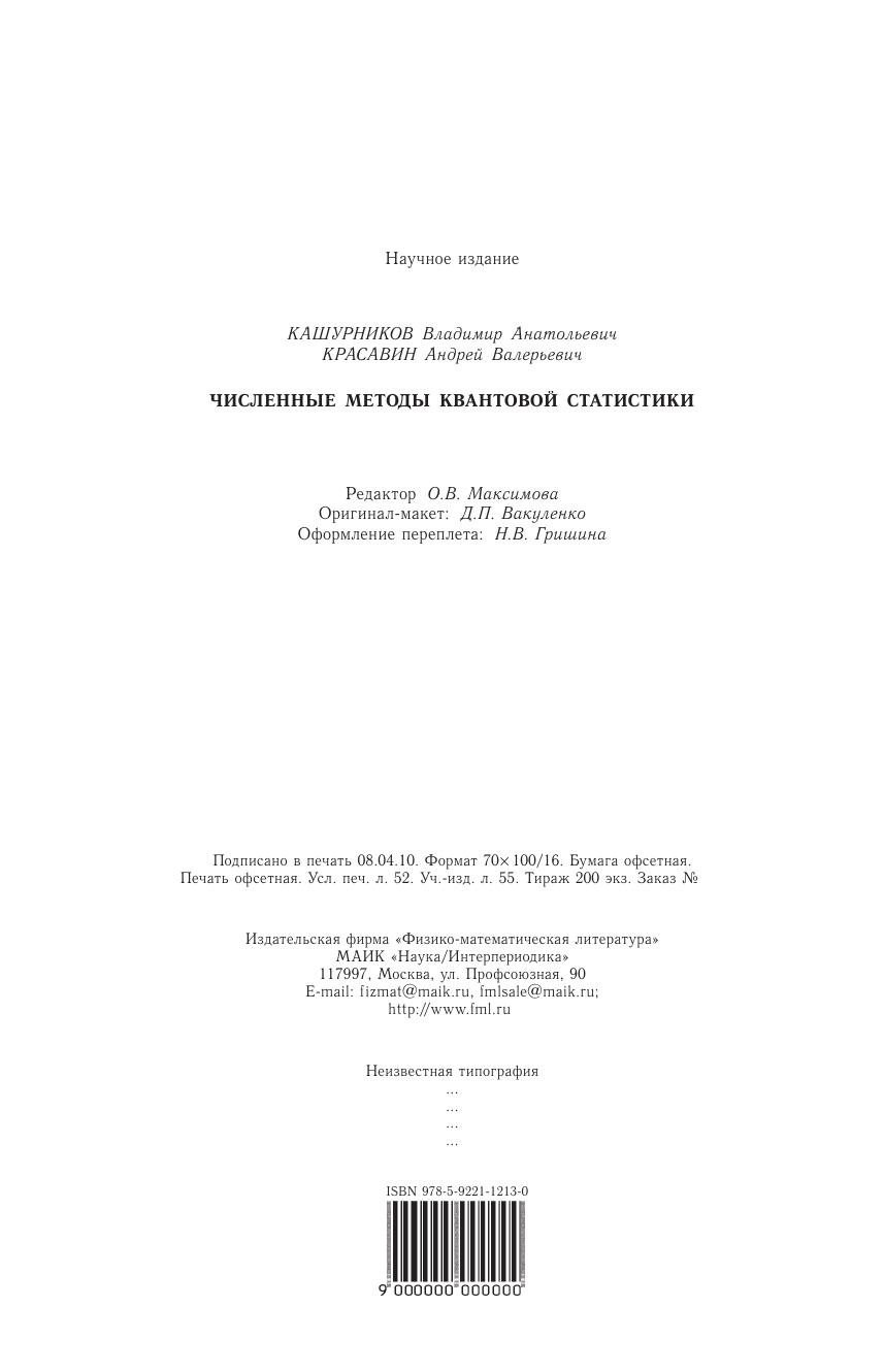 Численные методы квантовой статистики