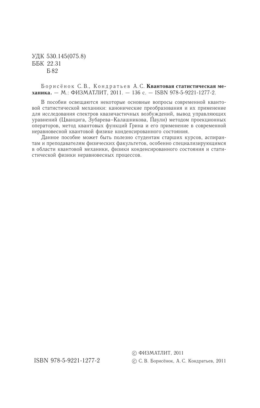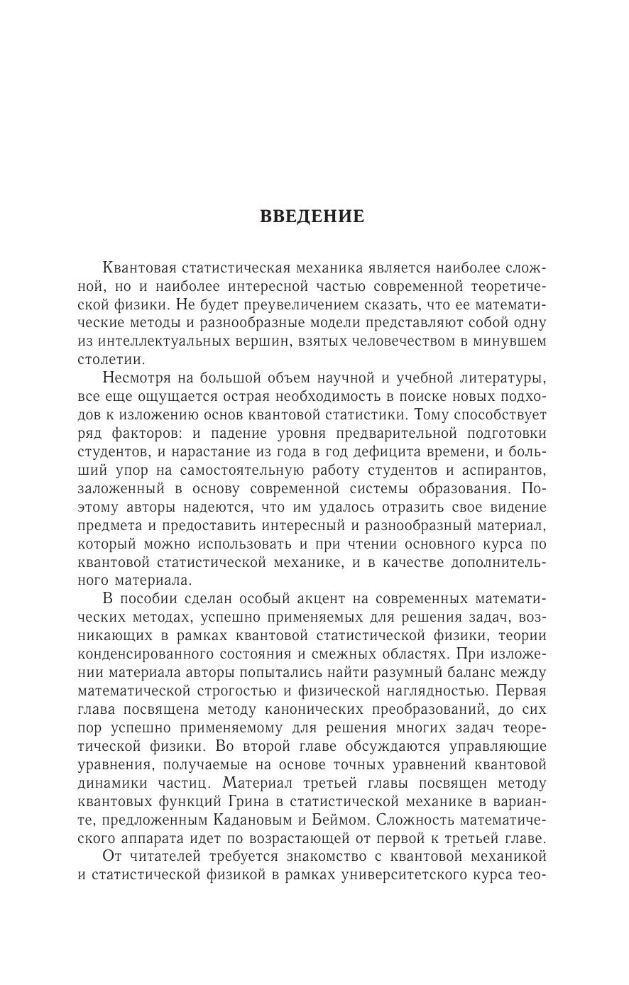 В пособии освещаютсян екоторые основные вопросы современной квантовой статистической механики: канонические преобразованияи их применение дляи сследованиясп ектров квазичастичных возбуждений, вывод управляющих уравнений (Цванцига, Зубарева–Калашникова, Паули) методом проекционных операторов, метод квантовых функций Грина и его применение в современной неравновесной квантовой физике конденсированного состояния. Данное пособие может быть полезно студентам старших курсов, аспирантам и преподавателям физических факультетов, особенно специализирующимся в области квантовой механики, физики конденсированного состояния и статистической физики неравновесных процессов.